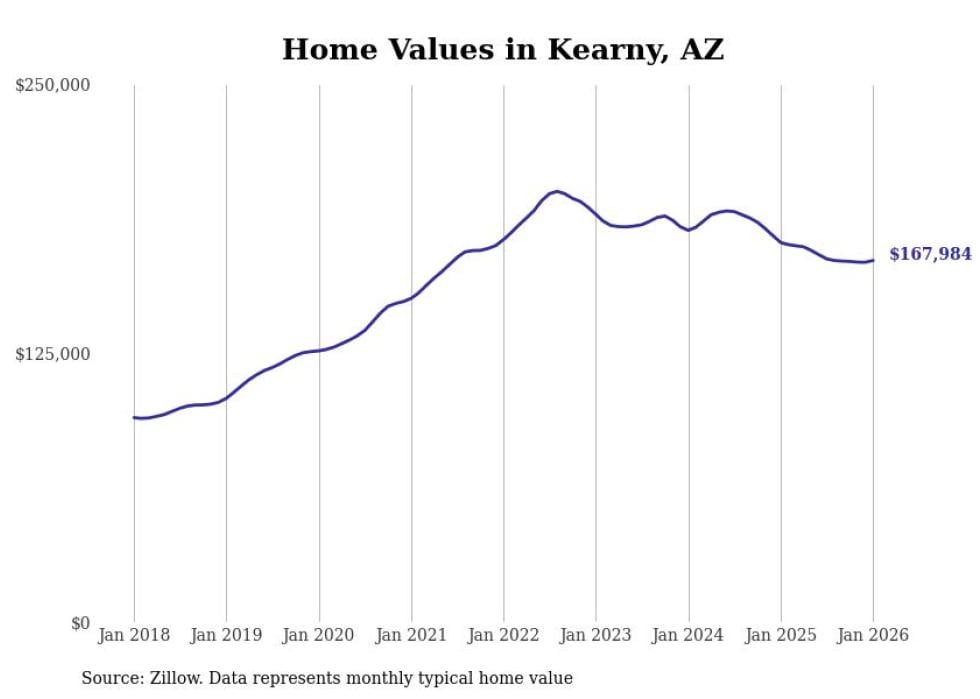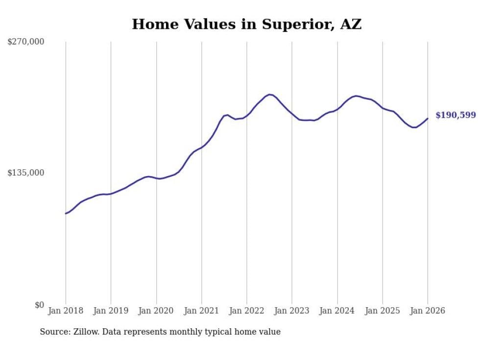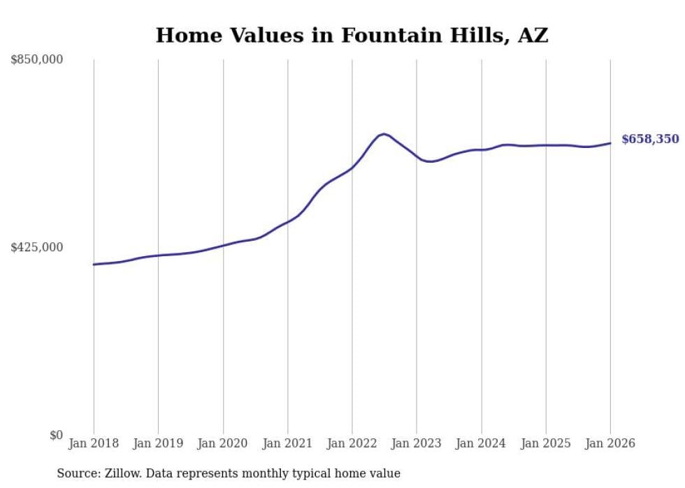 Stacker compiled a list of cities with the most expensive homes in the Phoenix-Mesa-Chandler, AZ metro area using data from Zillow. Charts show the monthly typical home value since January 2018.