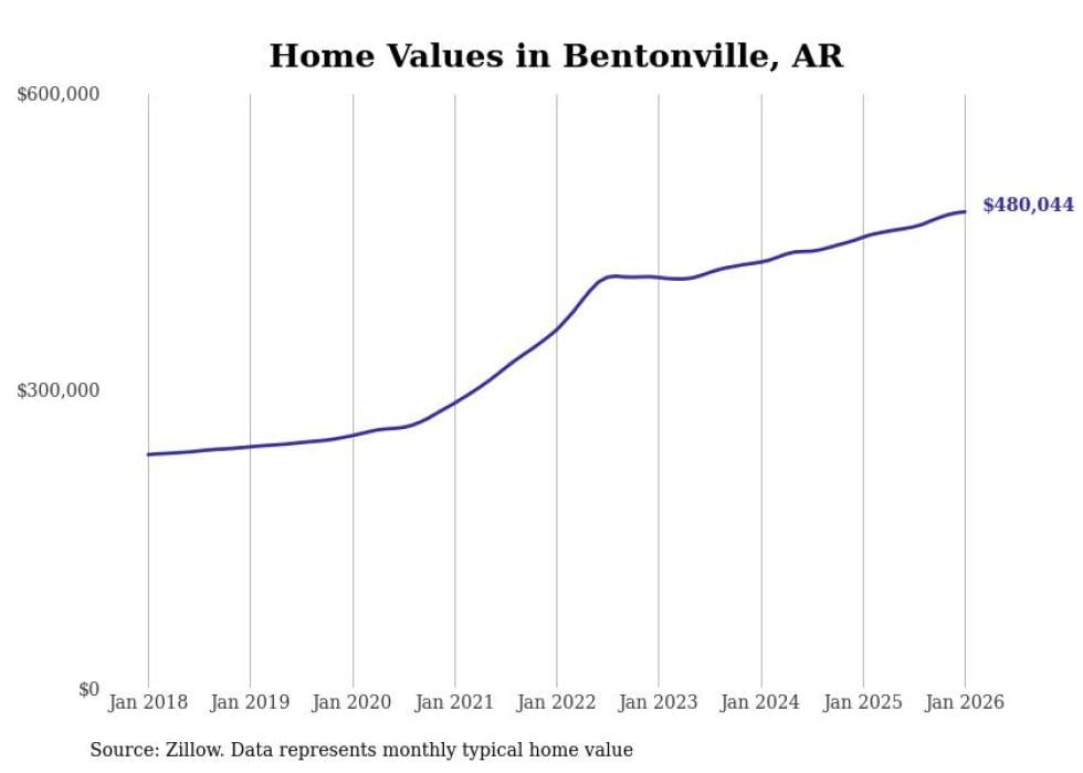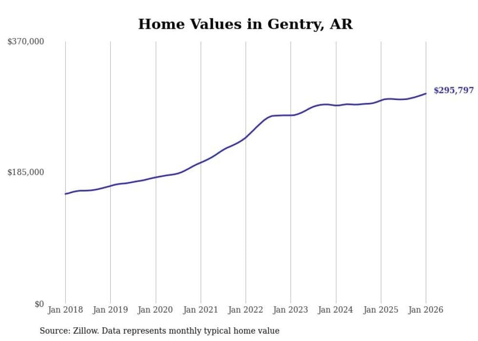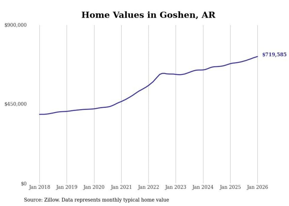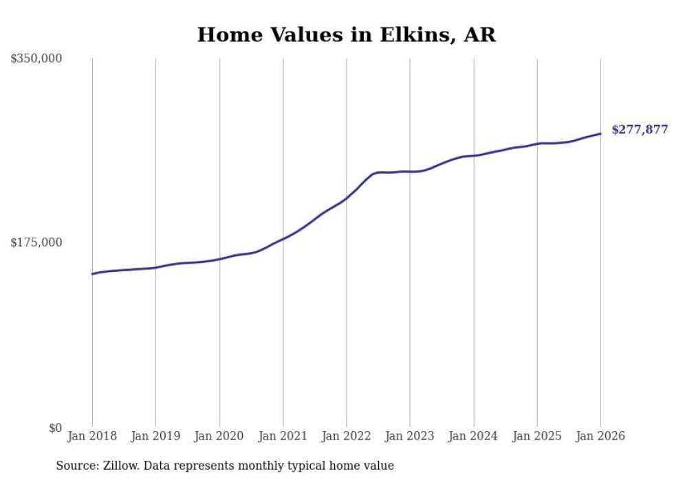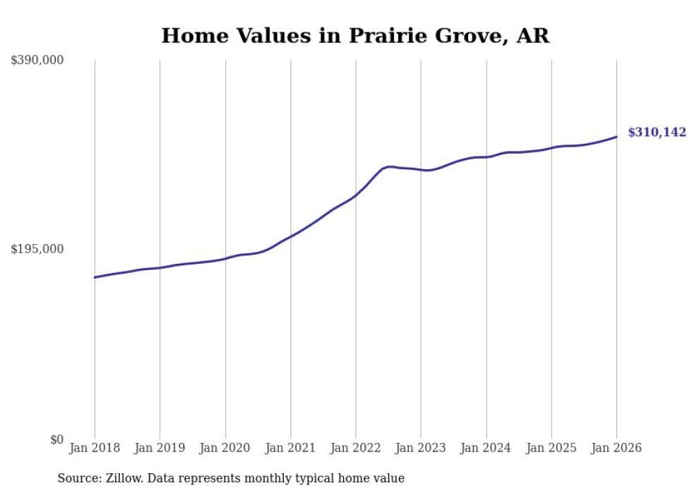 Stacker compiled a list of cities with the most expensive homes in the Fayetteville metro area using data from Zillow. Charts show the monthly typical home value since January 2018. All 29 cities and towns with data available were included in the list.