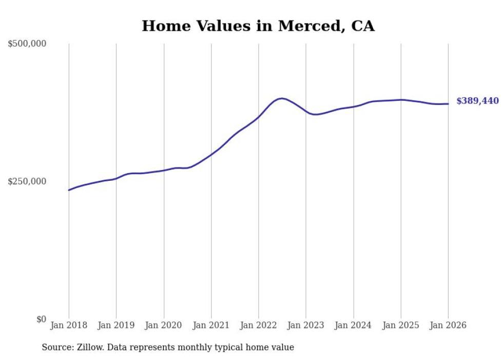 Stacker compiled a list of cities with the most expensive homes in the Merced metro area using data from Zillow. Charts show the monthly typical home value since January 2018. All 14 cities and towns with data available were included in the list.