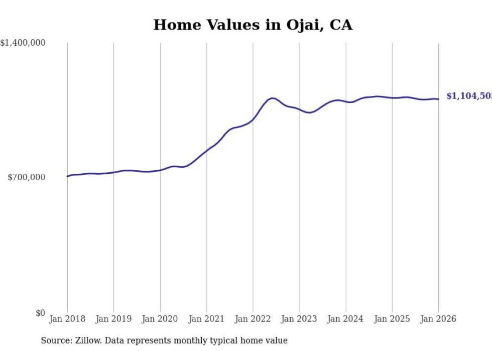 Stacker compiled a list of cities with the most expensive homes in the Oxnard metro area using data from Zillow. Charts show the monthly typical home value since January 2018. All 17 cities and towns with data available were included in the list.