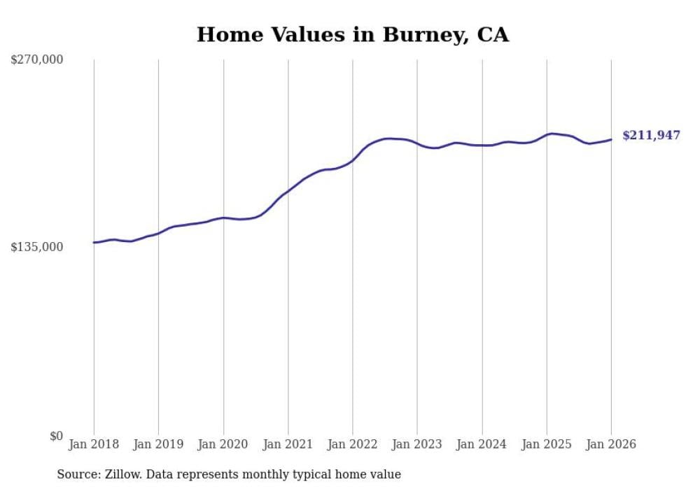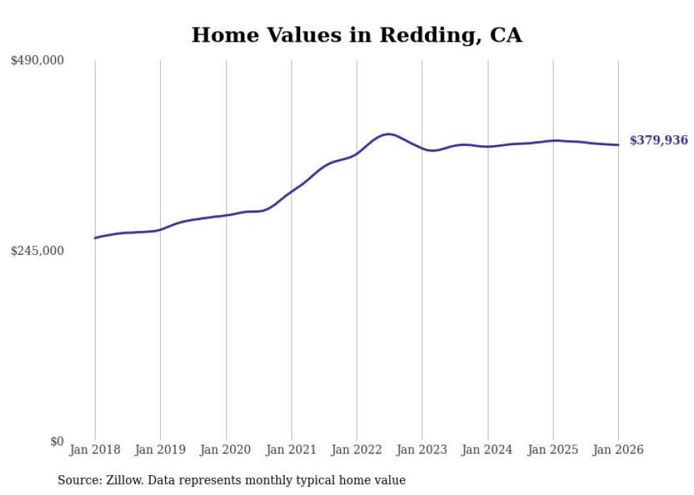 Stacker compiled a list of cities with the most expensive homes in the Redding metro area using data from Zillow. Charts show the monthly typical home value since January 2018. All 17 cities and towns with data available were included in the list.