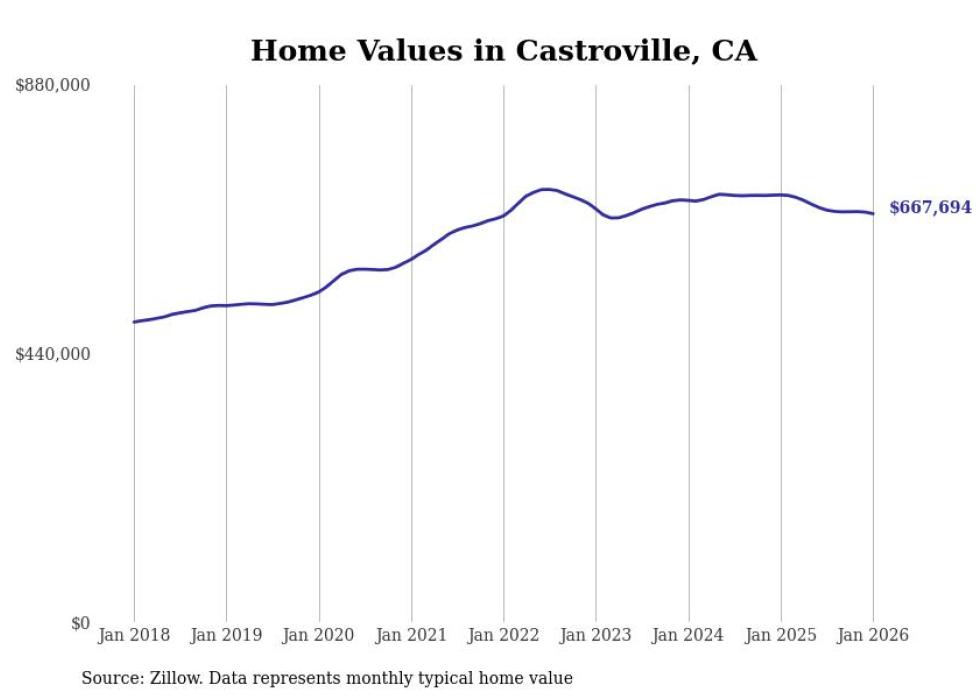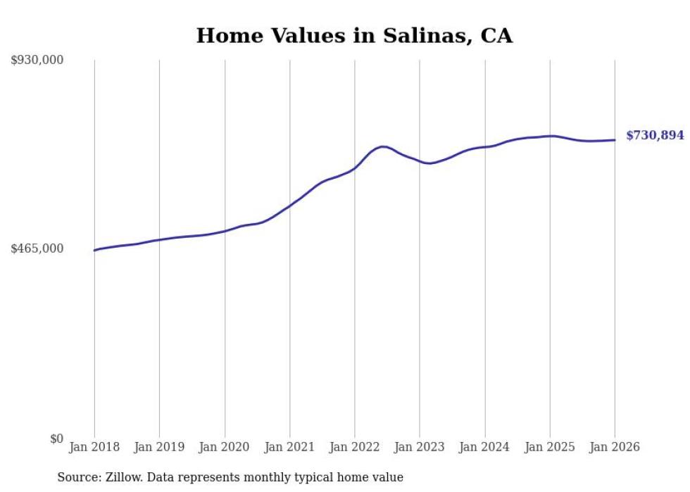 Stacker compiled a list of cities with the most expensive homes in the Salinas, CA metro area using data from Zillow. Charts show the monthly typical home value since January 2018.