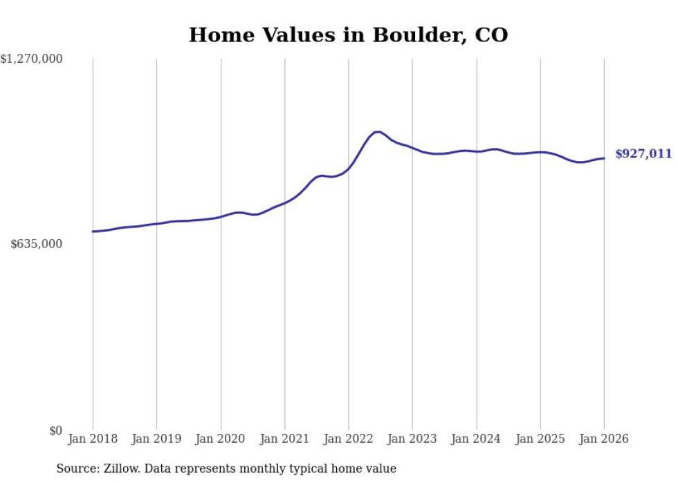Stacker compiled a list of cities with the most expensive homes in the Boulder metro area using data from Zillow. Charts show the monthly typical home value since January 2018. All 12 cities and towns with data available were included in the list.