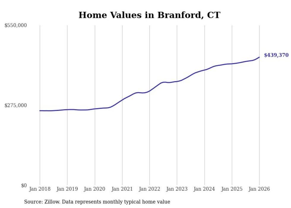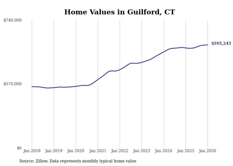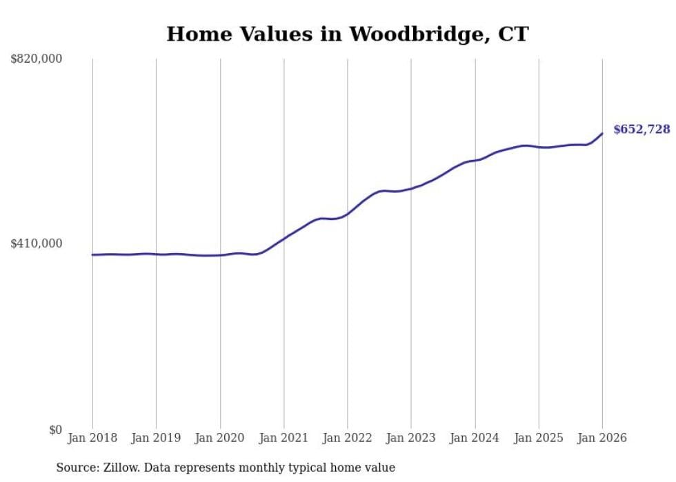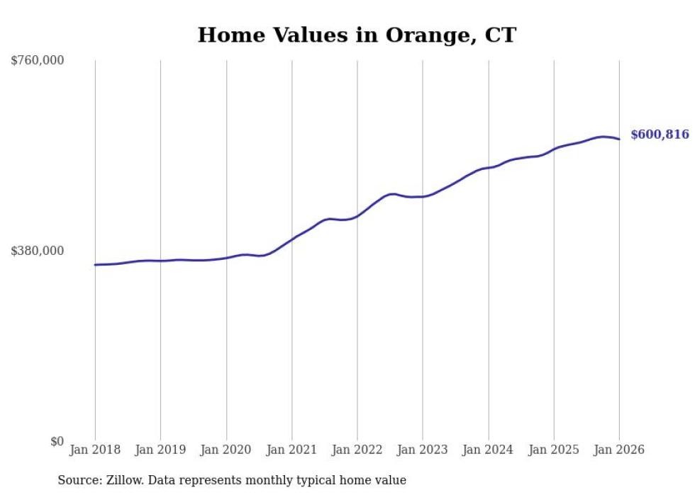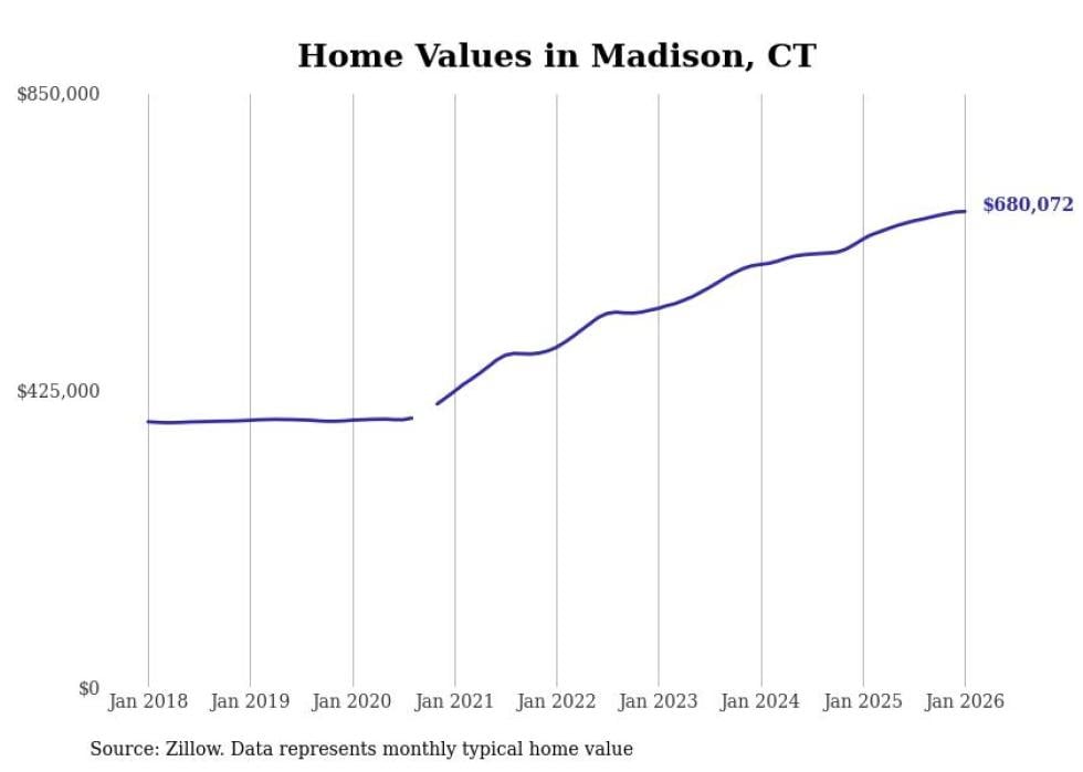 Stacker compiled a list of cities with the most expensive homes in the New Haven-Milford, CT metro area using data from Zillow. Charts show the monthly typical home value since January 2018.
