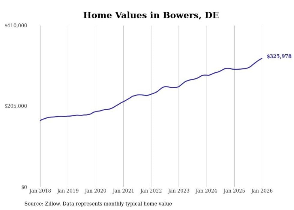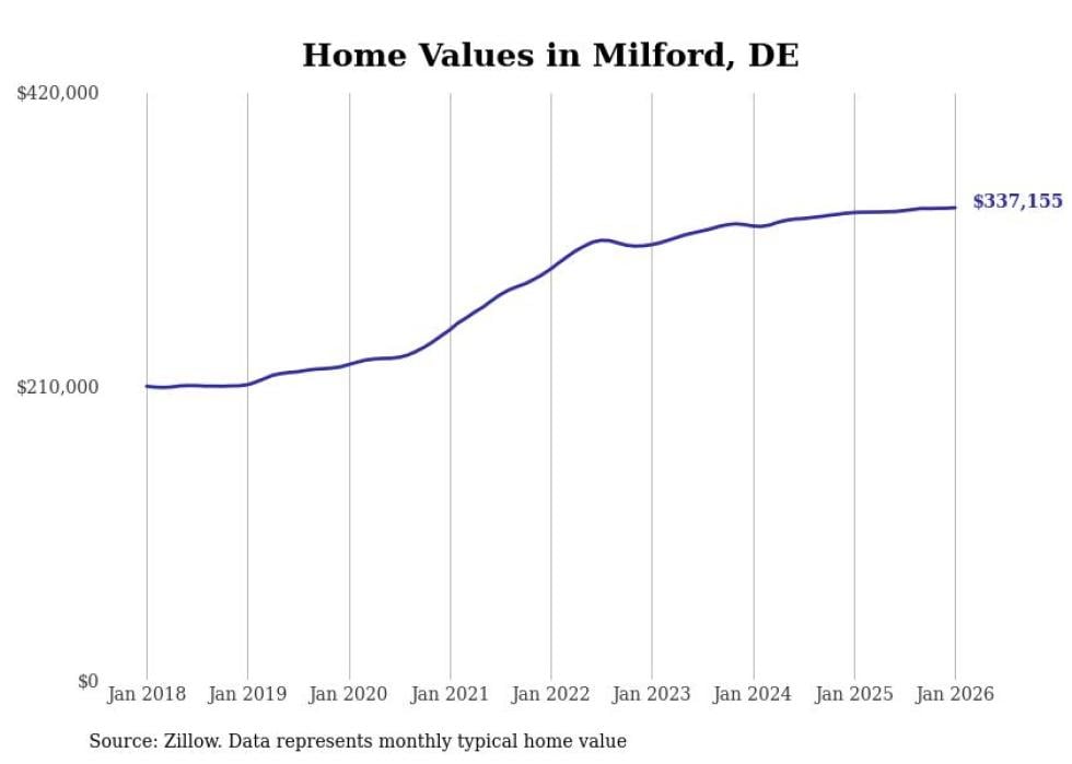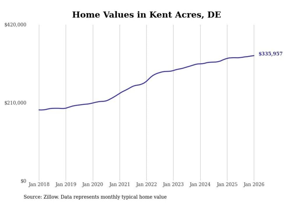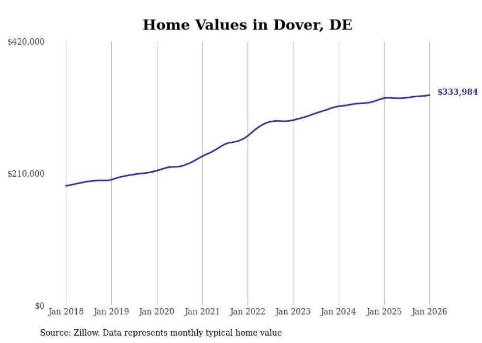 Stacker compiled a list of cities with the most expensive homes in the Dover, DE metro area using data from Zillow. Charts show the monthly typical home value since January 2018.