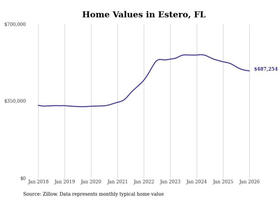 Stacker compiled a list of cities with the most expensive homes in the Cape Coral-Fort Myers, FL metro area using data from Zillow. Charts show the monthly typical home value since January 2018.