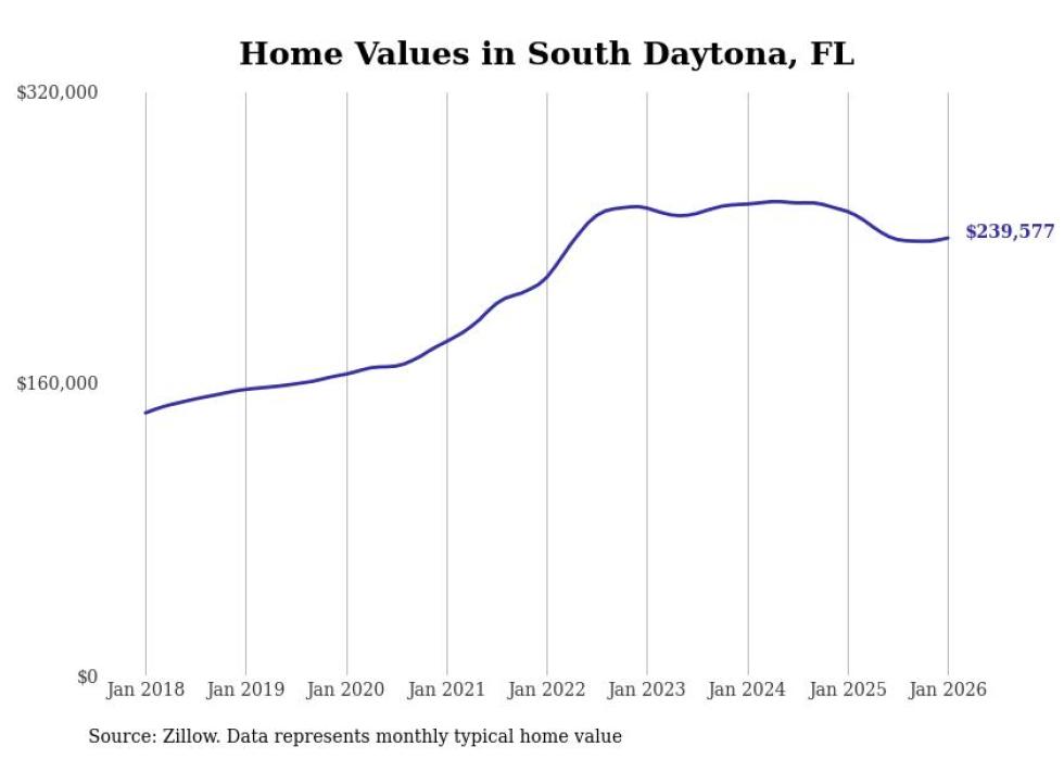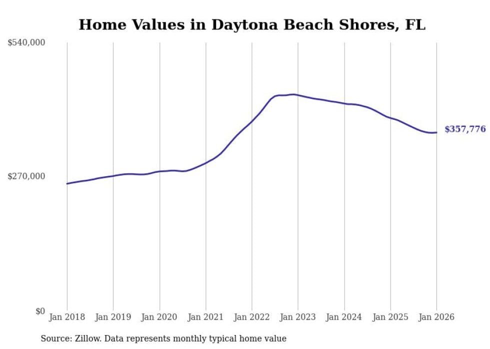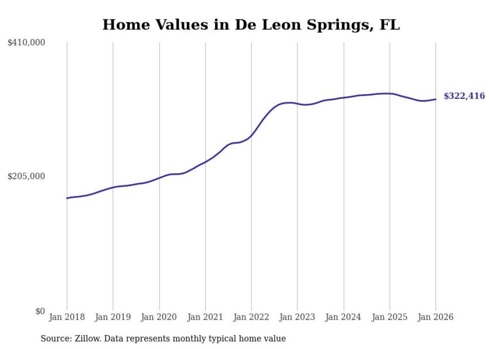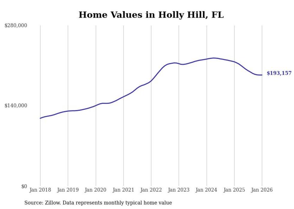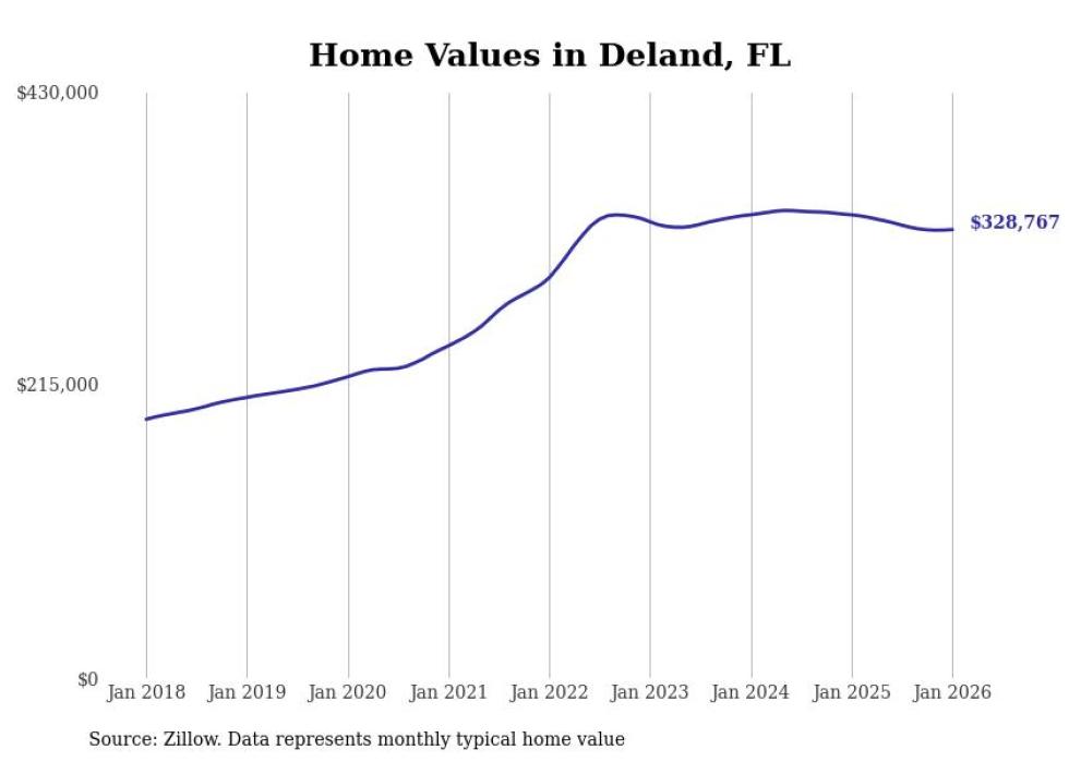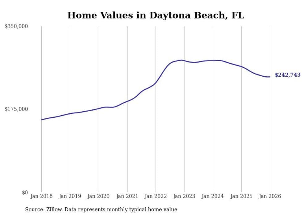 Stacker compiled a list of cities with the most expensive homes in the Deltona-Daytona Beach-Ormond Beach, FL metro area using data from Zillow. Charts show the monthly typical home value since January 2018.