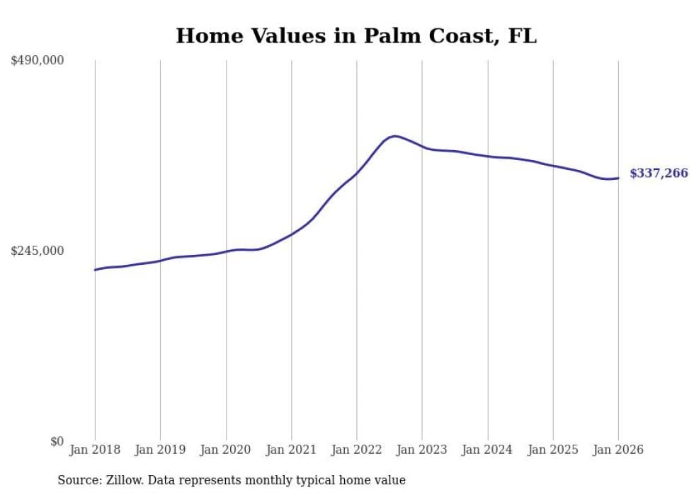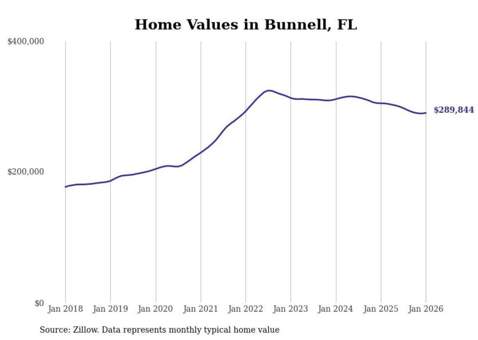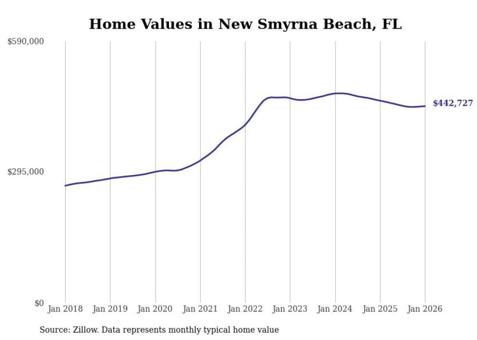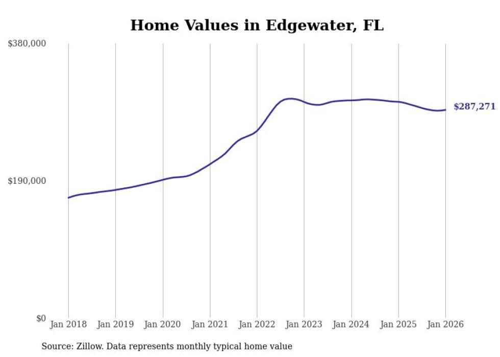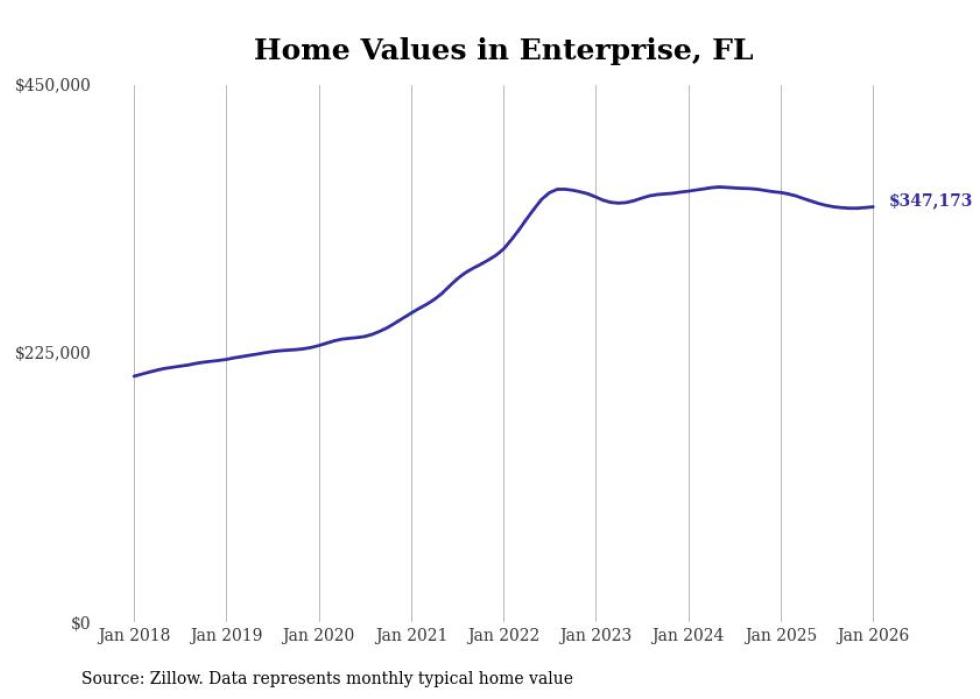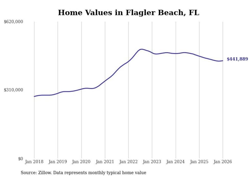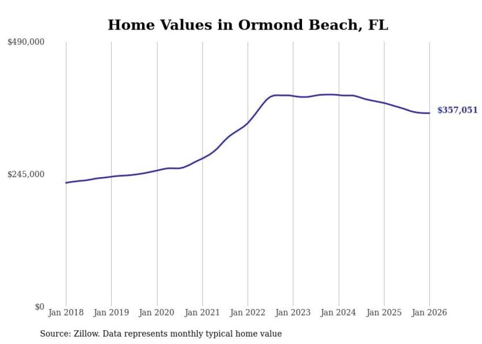 Stacker compiled a list of cities with the most expensive homes in the Deltona-Daytona Beach-Ormond Beach, FL metro area using data from Zillow. Charts show the monthly typical home value since January 2018.