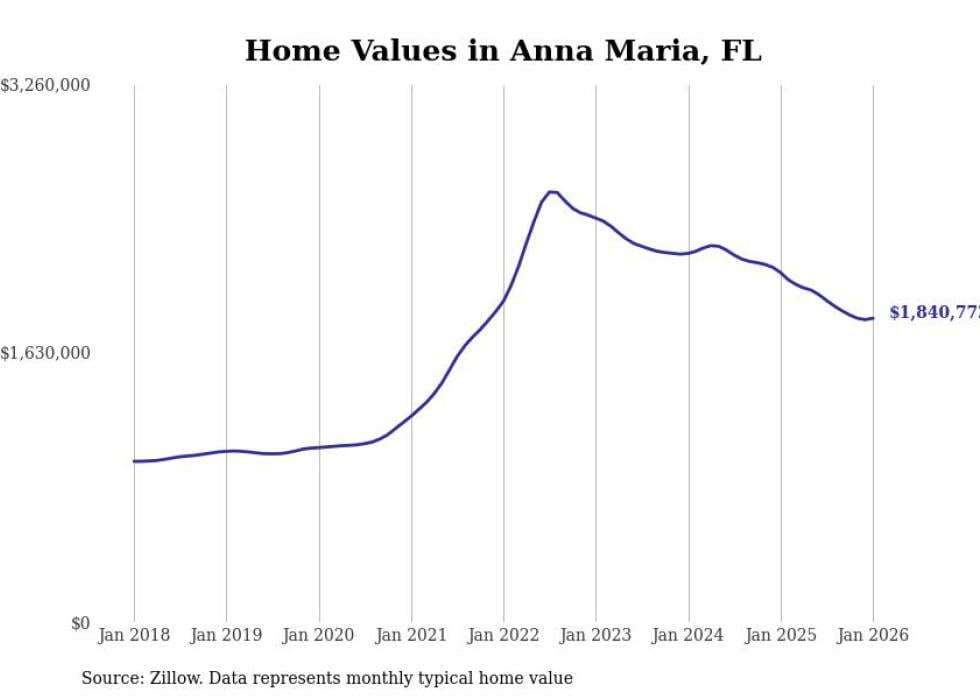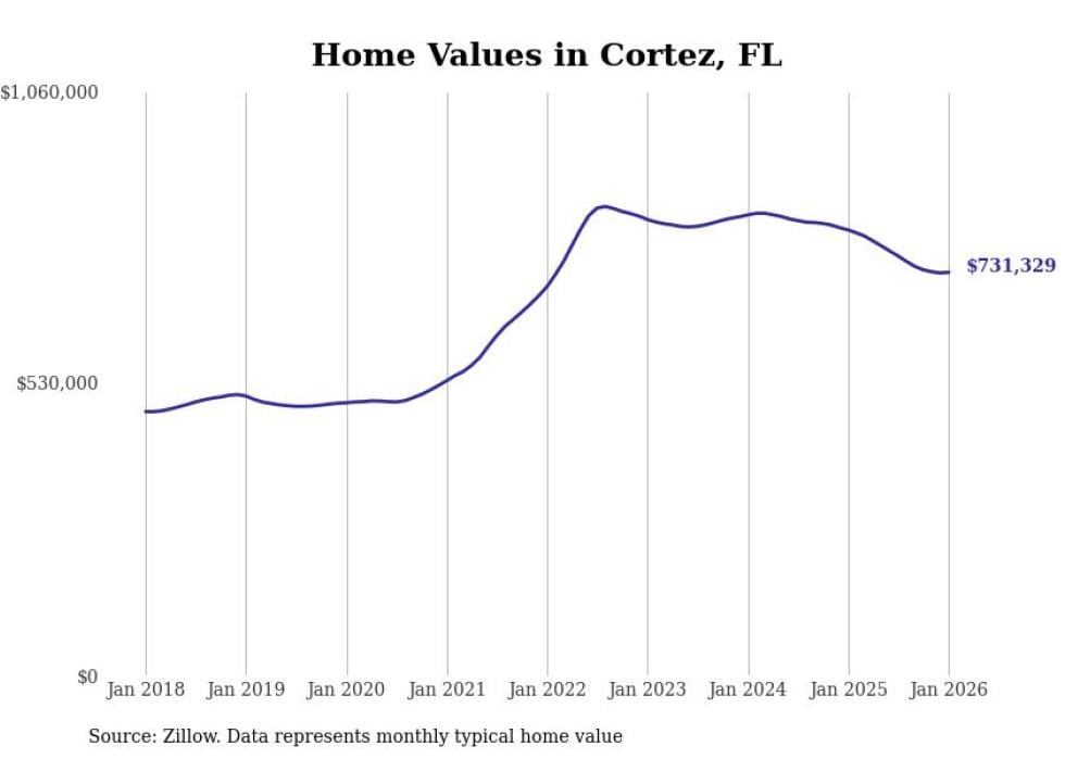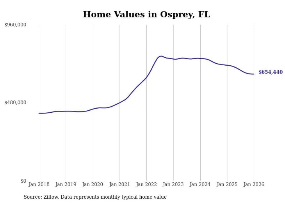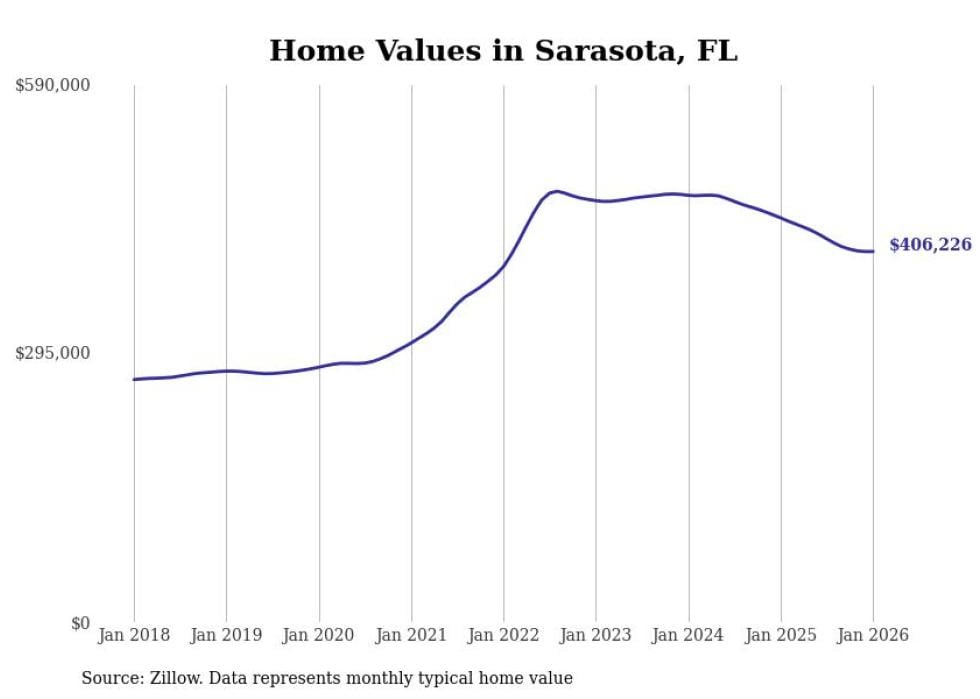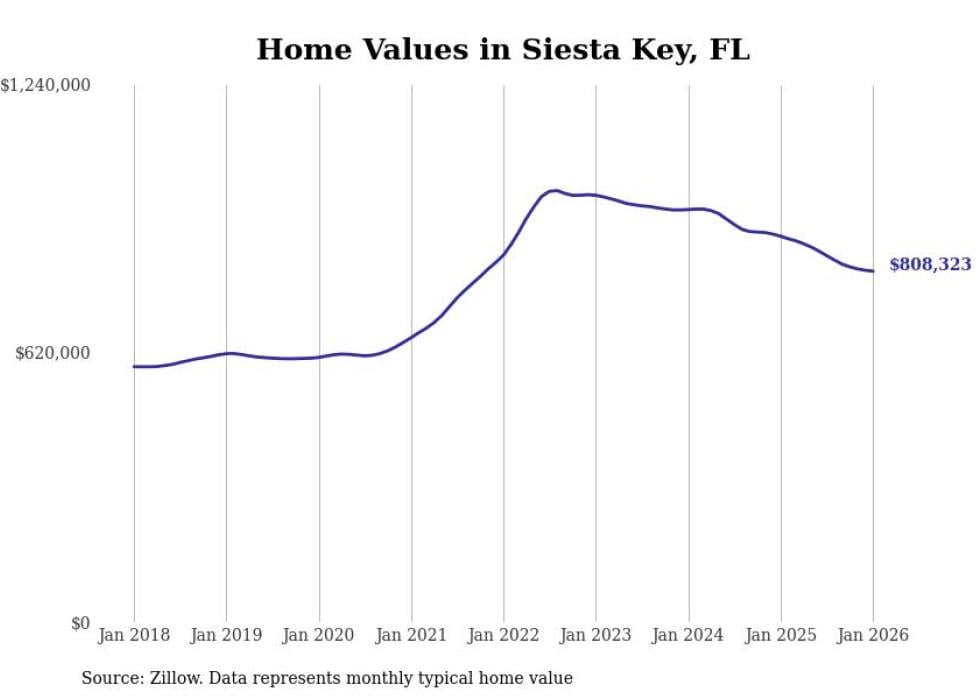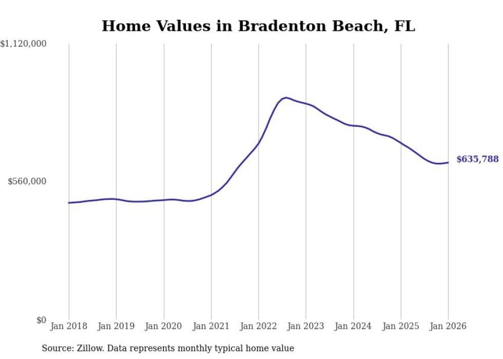 Stacker compiled a list of cities with the most expensive homes in the North Port-Sarasota-Bradenton, FL metro area using data from Zillow. Charts show the monthly typical home value since January 2018.