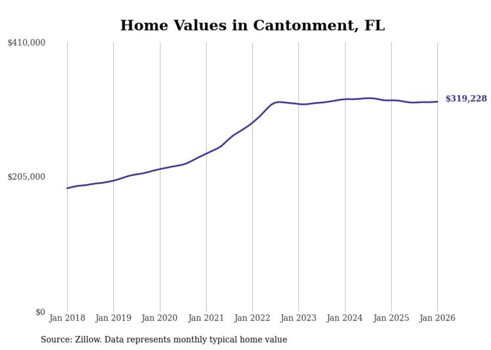 Stacker compiled a list of cities with the most expensive homes in the Pensacola-Ferry Pass-Brent, FL metro area using data from Zillow. Charts show the monthly typical home value since January 2018.