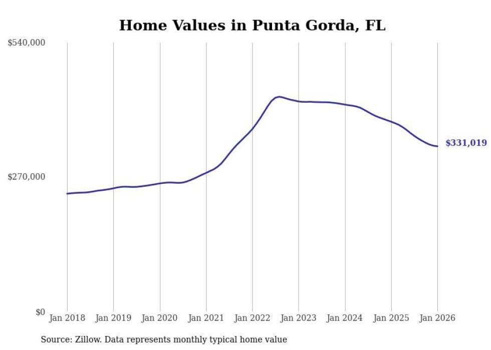 Stacker compiled a list of cities with the most expensive homes in the Punta Gorda, FL metro area using data from Zillow. Charts show the monthly typical home value since January 2018.