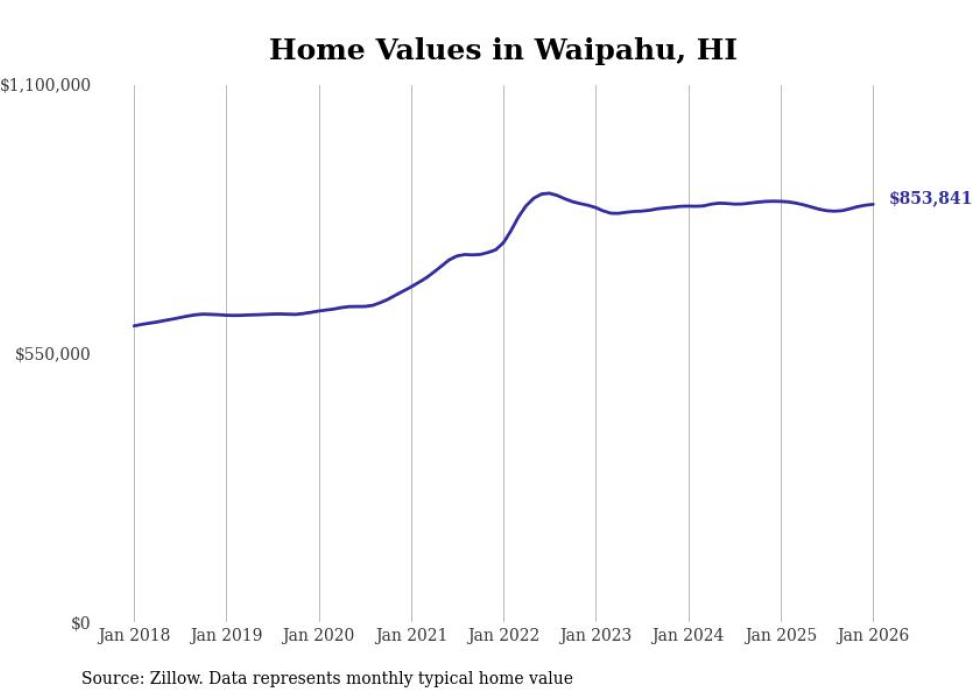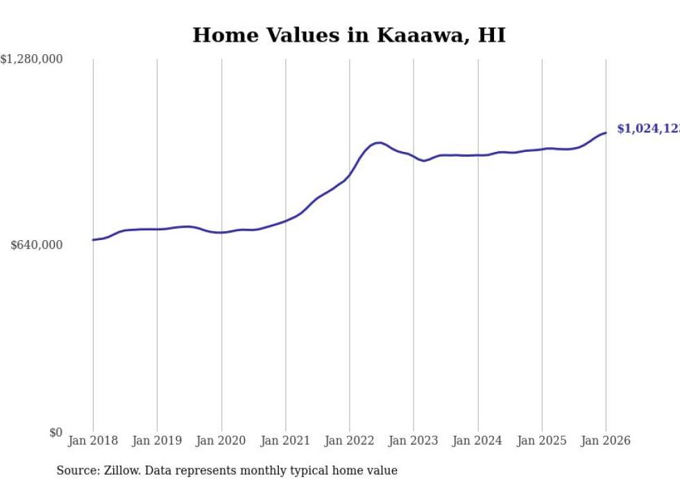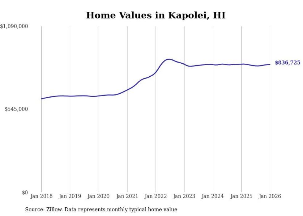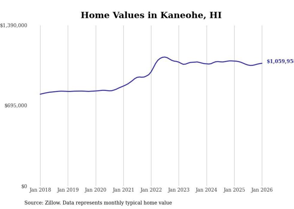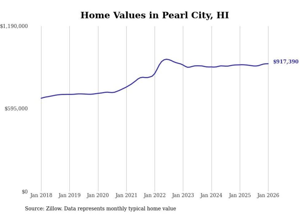 Stacker compiled a list of cities with the most expensive homes in the Urban Honolulu, HI metro area using data from Zillow. Charts show the monthly typical home value since January 2018.