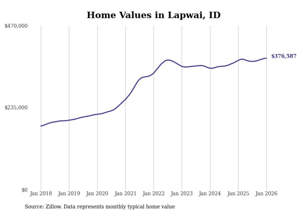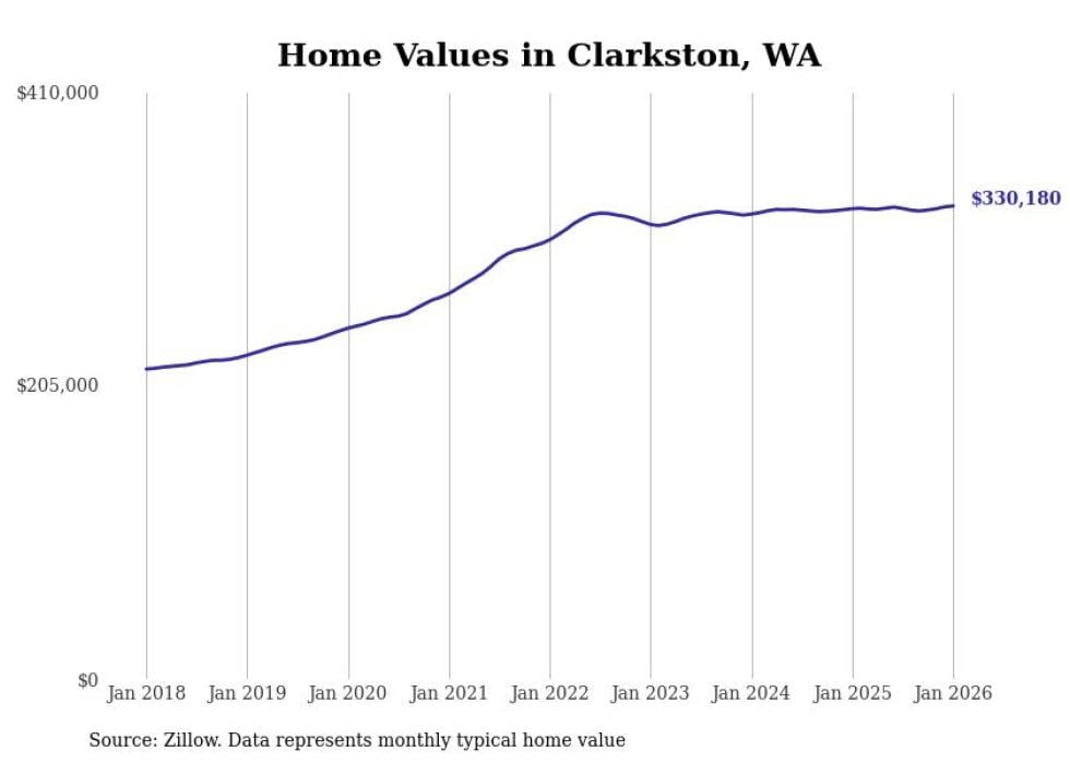 Stacker compiled a list of cities with the most expensive homes in the Lewiston metro area using data from Zillow. Charts show the monthly typical home value since January 2018. All 8 cities and towns with data available were included in the list.