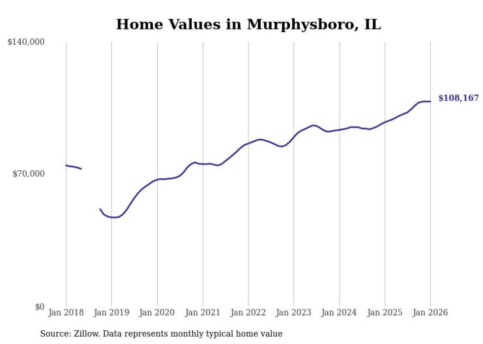 Stacker compiled a list of cities with the most expensive homes in the Carbondale metro area using data from Zillow. Charts show the monthly typical home value since January 2018. All 28 cities and towns with data available were included in the list.