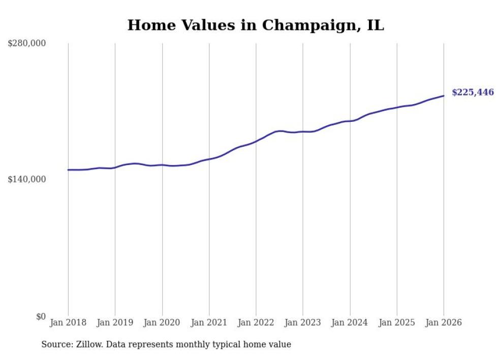 Cities with the fastest-growing home prices in the Champaign metro area