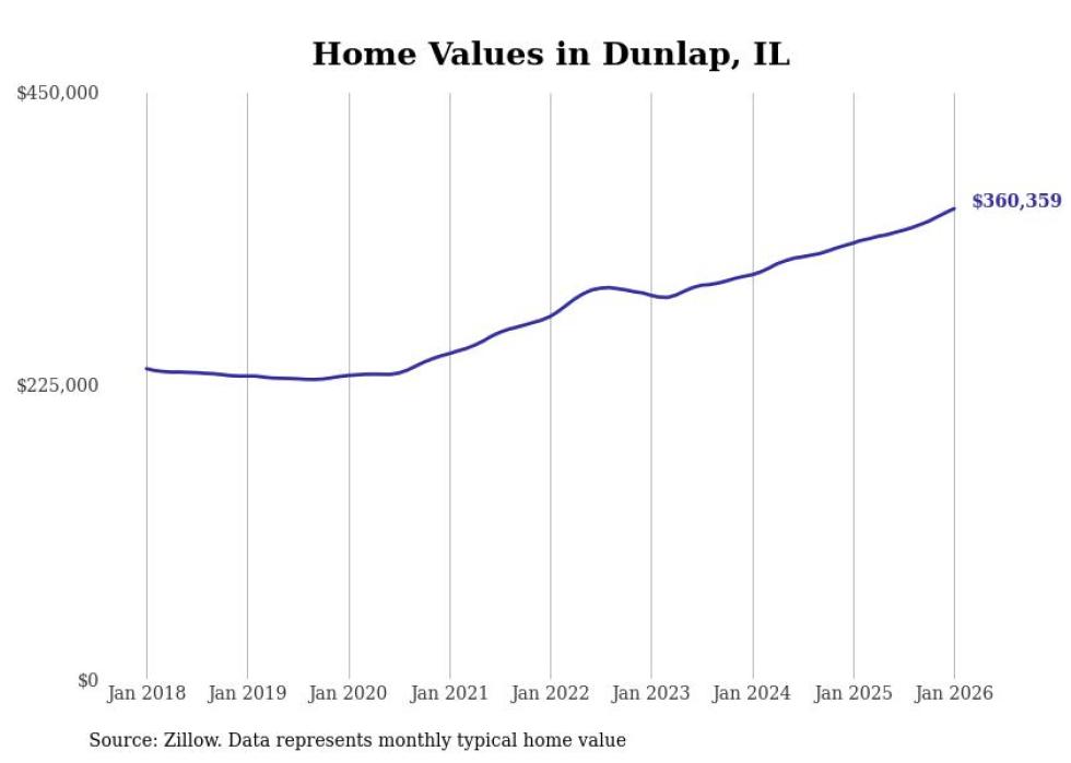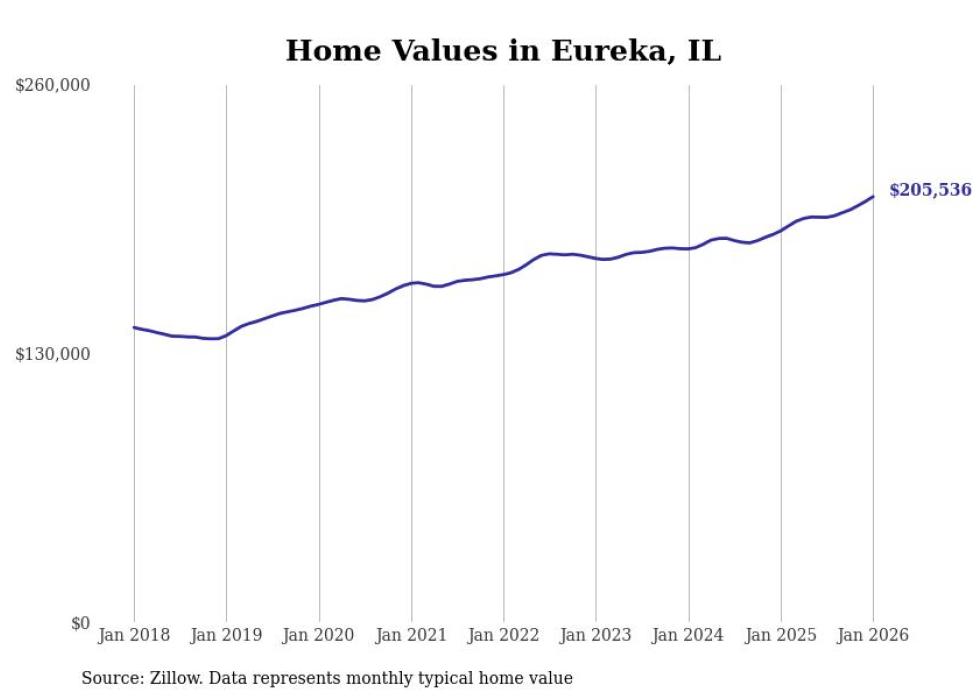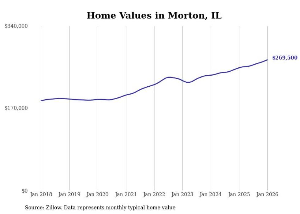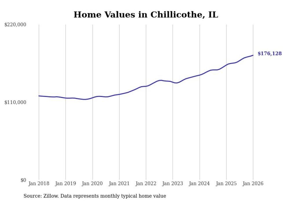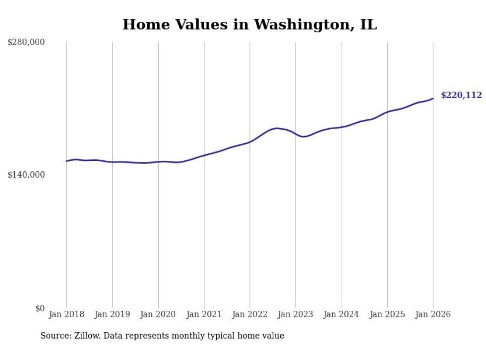 Stacker compiled a list of cities with the most expensive homes in the Peoria metro area using data from Zillow. Charts show the monthly typical home value since January 2018. Data was available for 66 cities and towns.