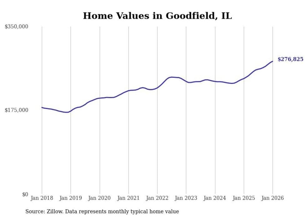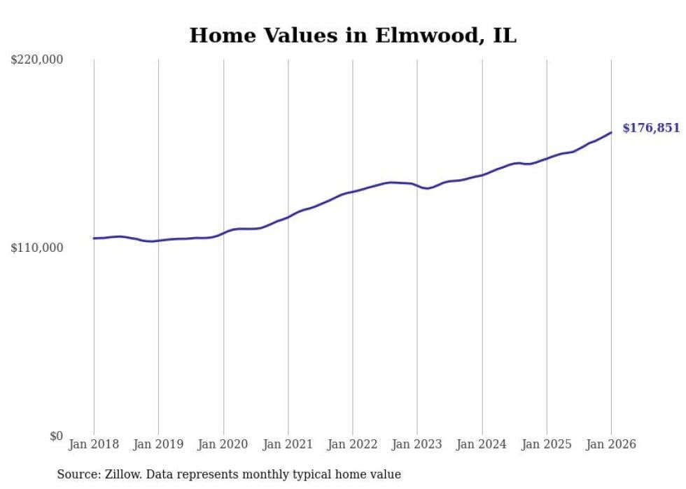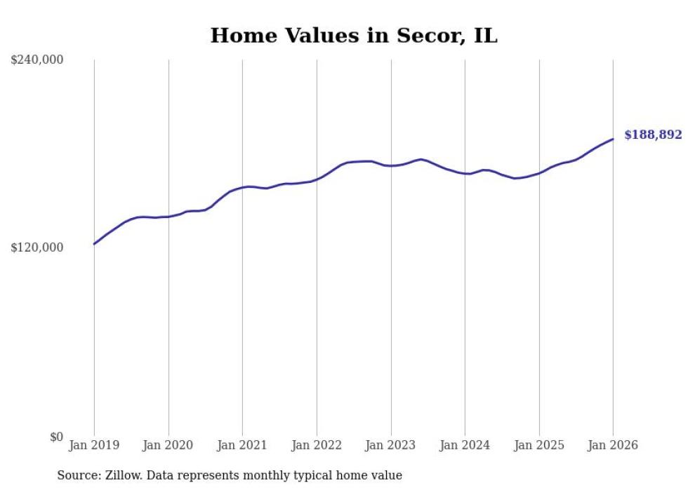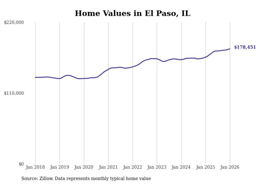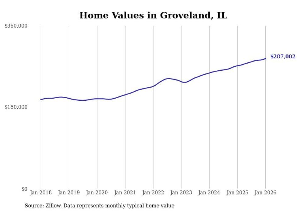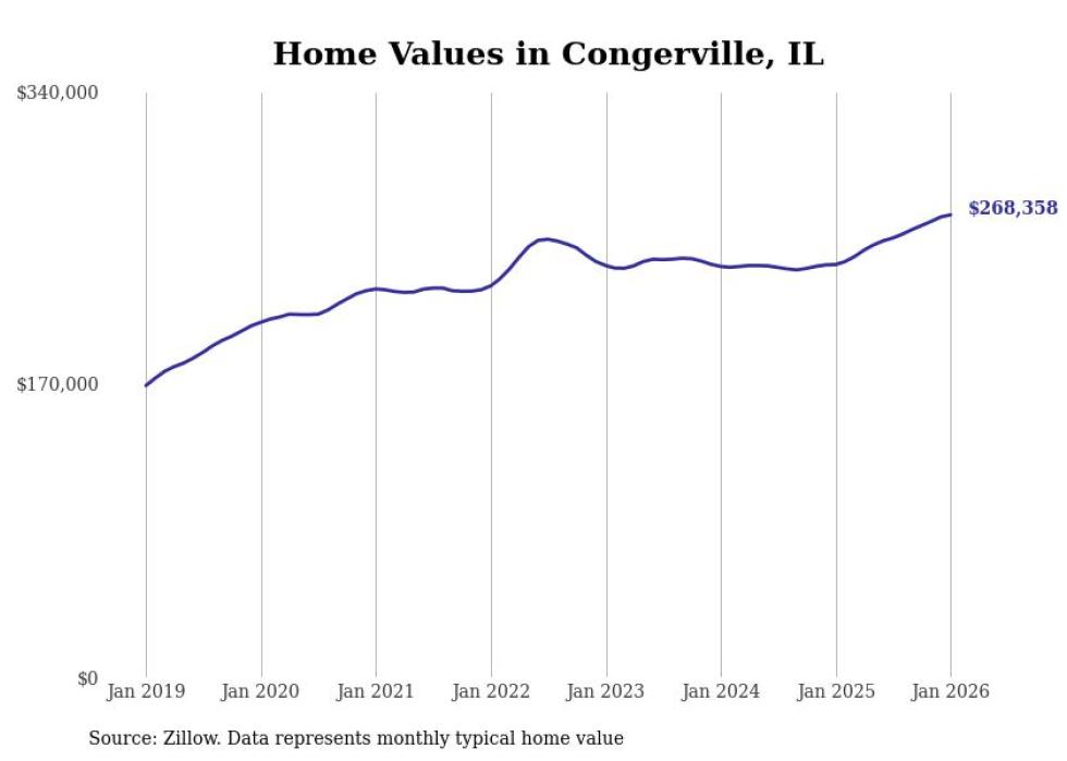 Stacker compiled a list of cities with the most expensive homes in the Peoria metro area using data from Zillow. Charts show the monthly typical home value since January 2018. Data was available for 66 cities and towns.