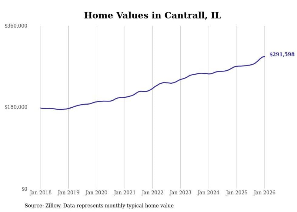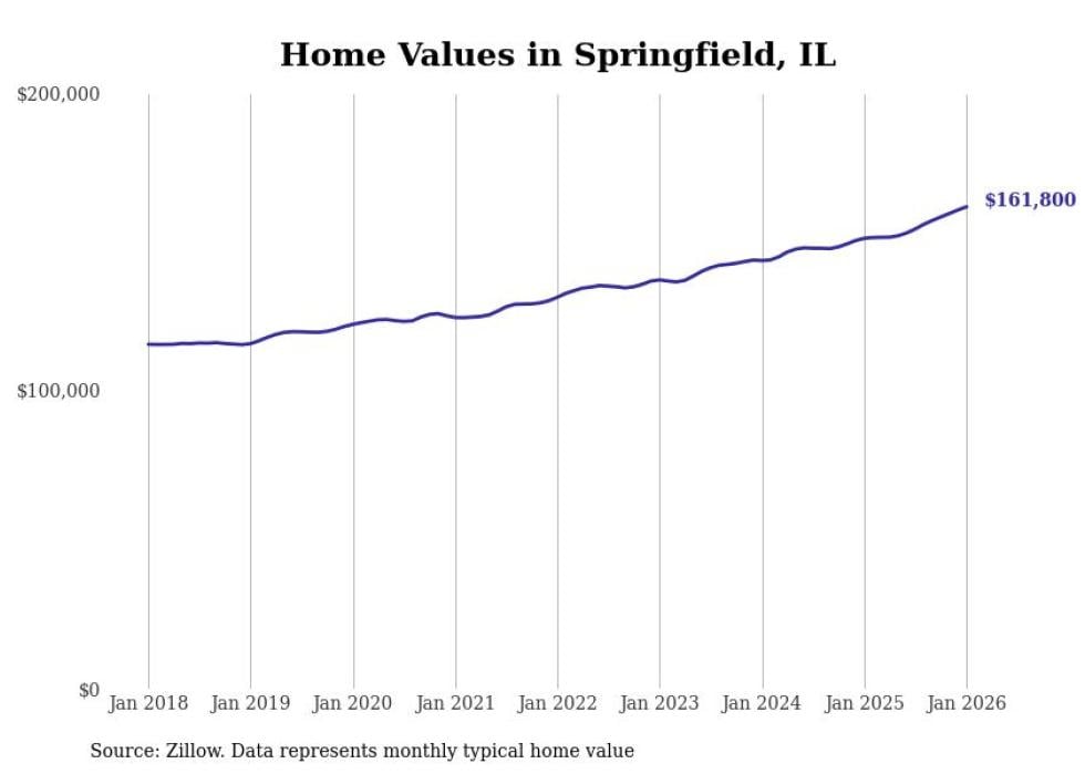 Stacker compiled a list of cities with the most expensive homes in the Springfield, Illinois metro area using data from Zillow. Charts show the monthly typical home value since January 2018. All 28 cities and towns with data available were included in the list.