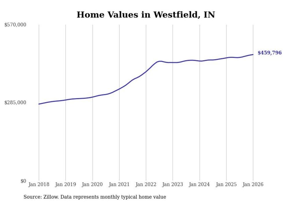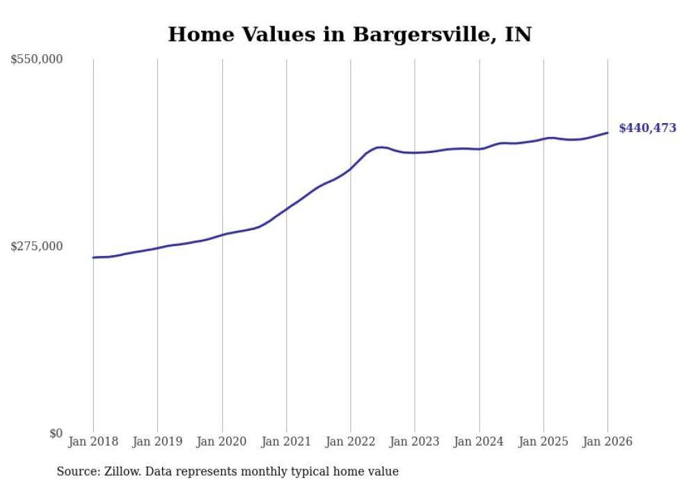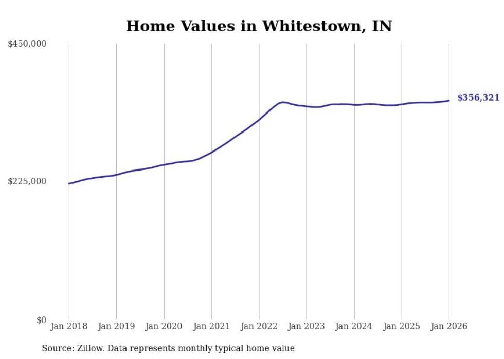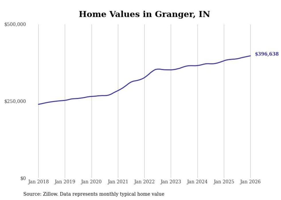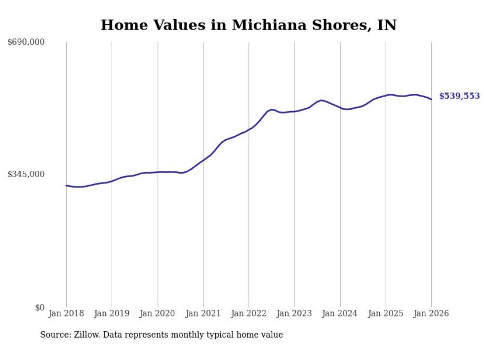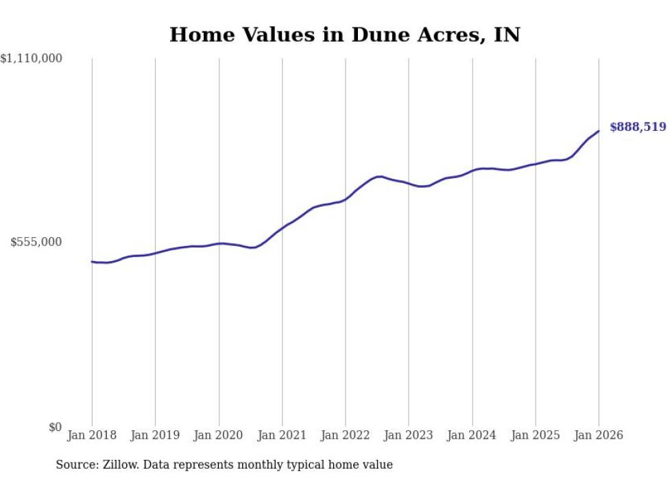 Stacker compiled a list of cities with the most expensive homes in Indiana using data from Zillow. Cities are ranked by the Zillow Home Values Index for all homes as of January 2026. The charts in this story were created automatically using Matplotlib.