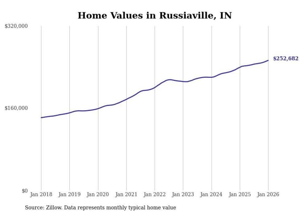 Stacker compiled a list of cities with the most expensive homes in the Kokomo metro area using data from Zillow. Charts show the monthly typical home value since January 2018. All 3 cities and towns with data available were included in the list.