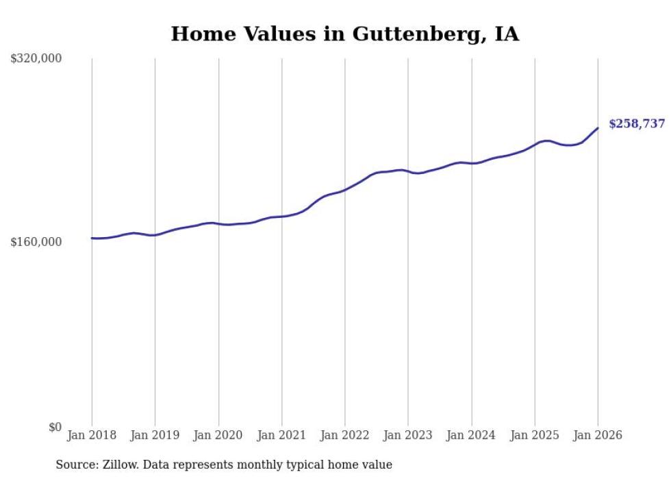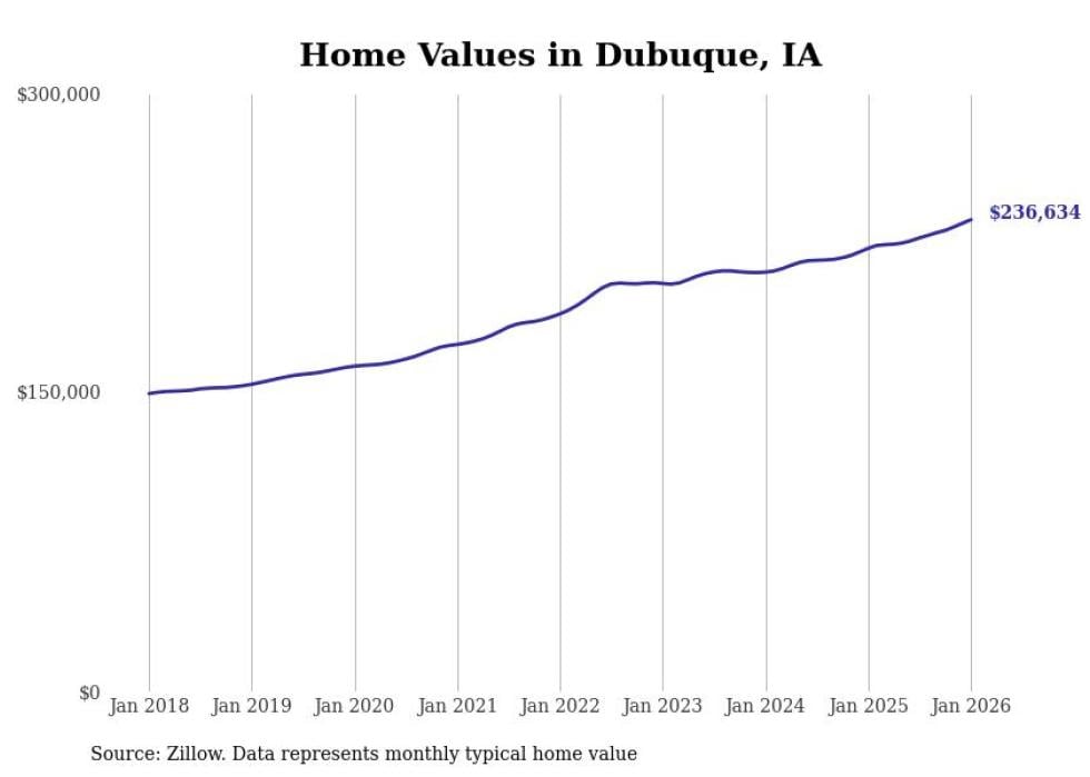 Stacker compiled a list of cities with the most expensive homes in the Dubuque metro area using data from Zillow. Charts show the monthly typical home value since January 2018. All 13 cities and towns with data available were included in the list.