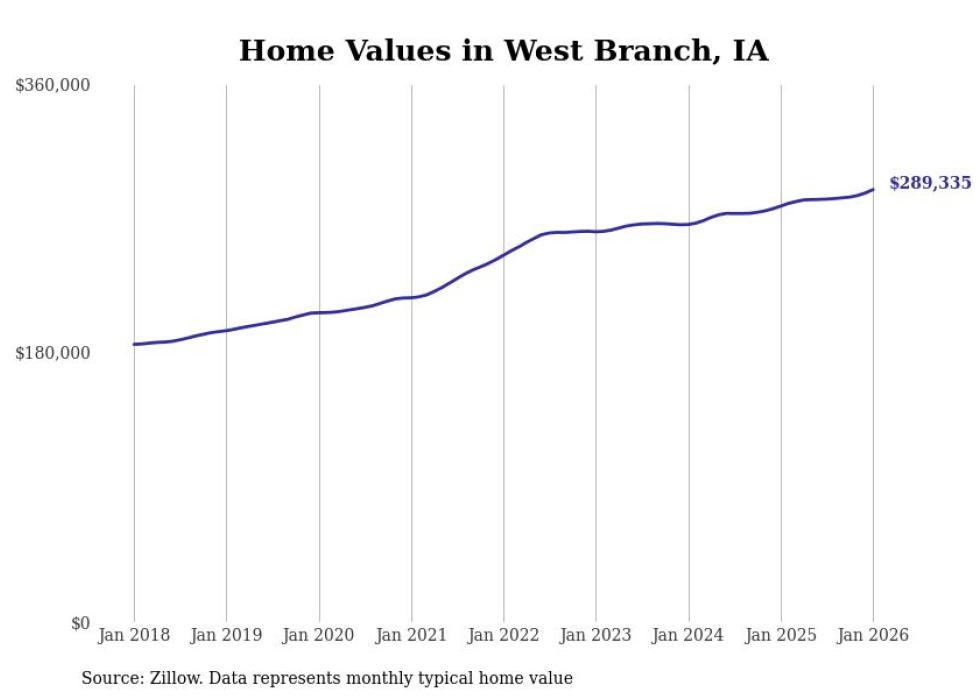 Cities with the fastest-growing home prices in the Iowa City metro area