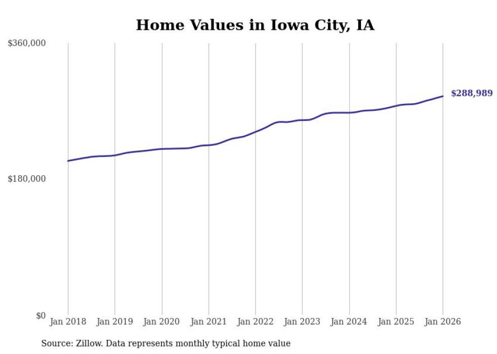 Stacker compiled a list of cities with the most expensive homes in the Iowa City metro area using data from Zillow. Charts show the monthly typical home value since January 2018. All 21 cities and towns with data available were included in the list.