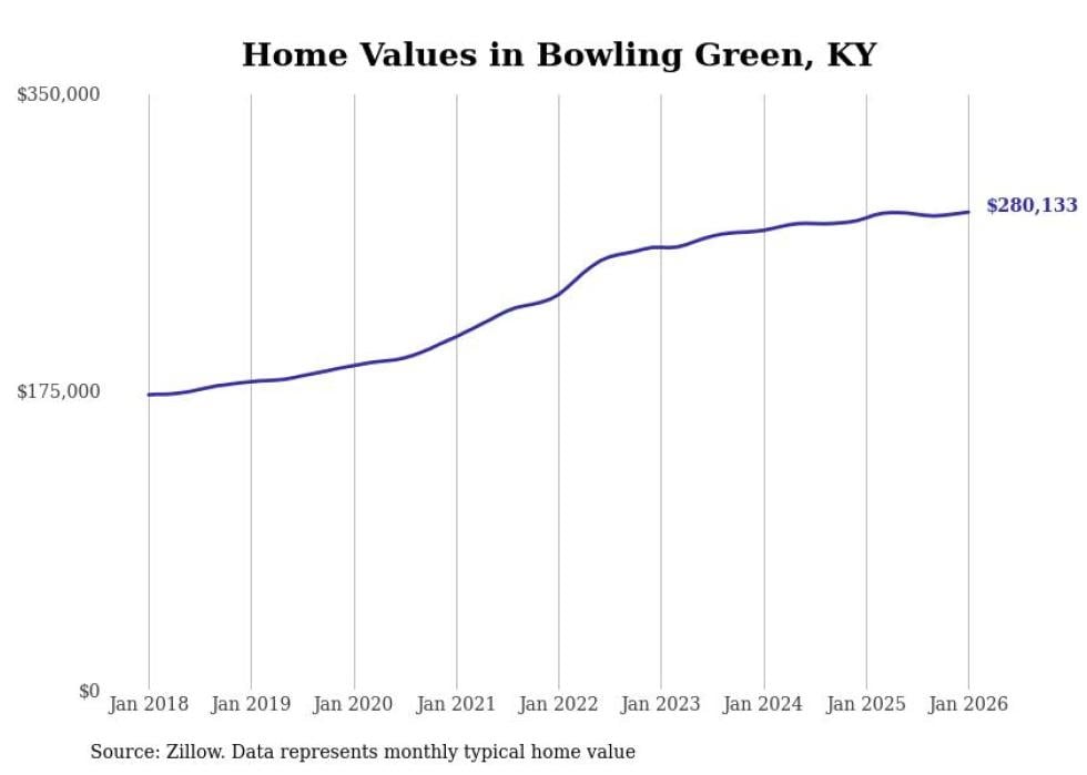 Stacker compiled a list of cities with the most expensive homes in the Bowling Green metro area using data from Zillow. Charts show the monthly typical home value since January 2018. All 18 cities and towns with data available were included in the list.
