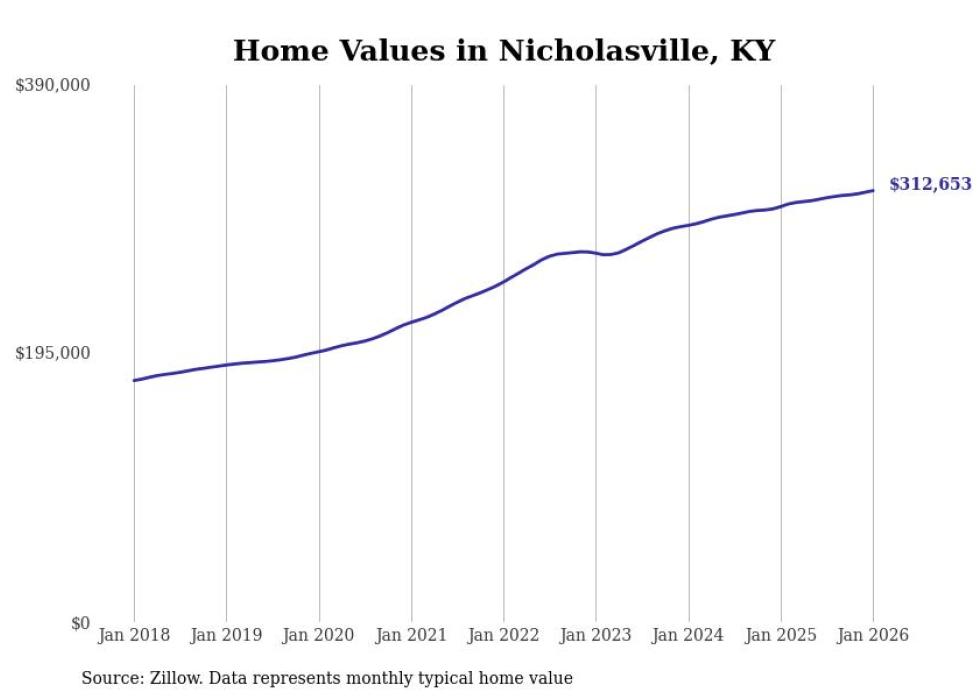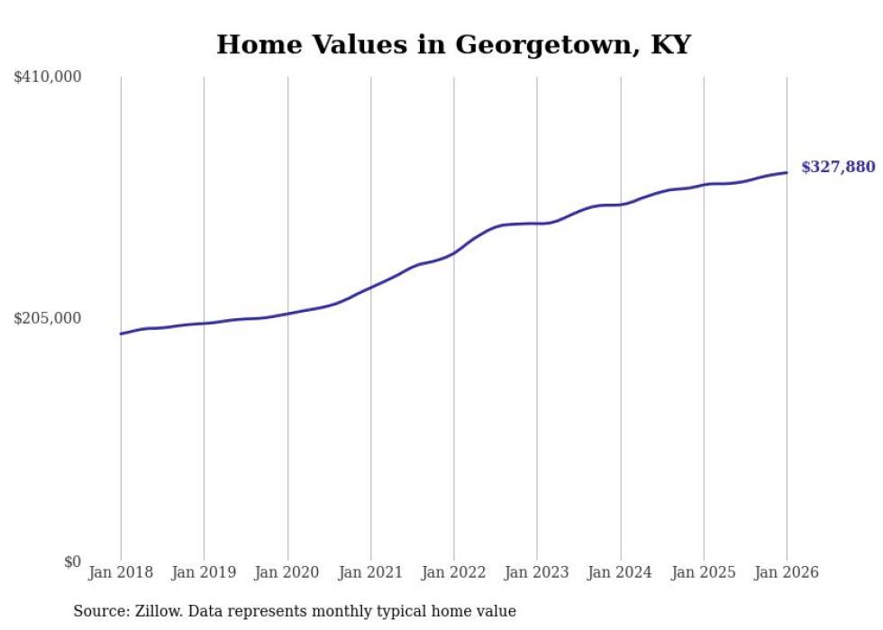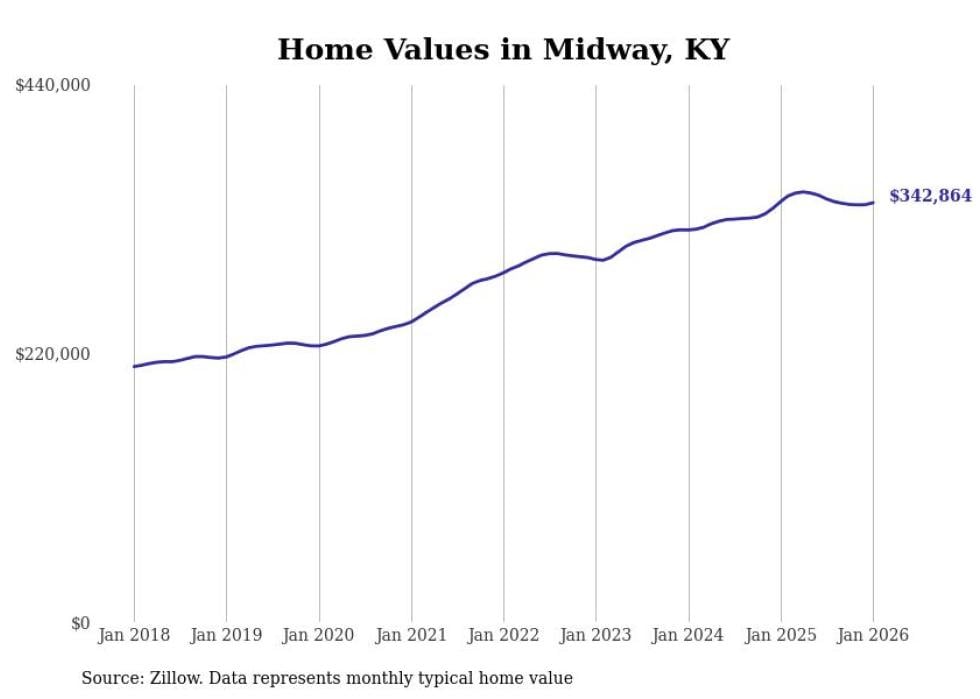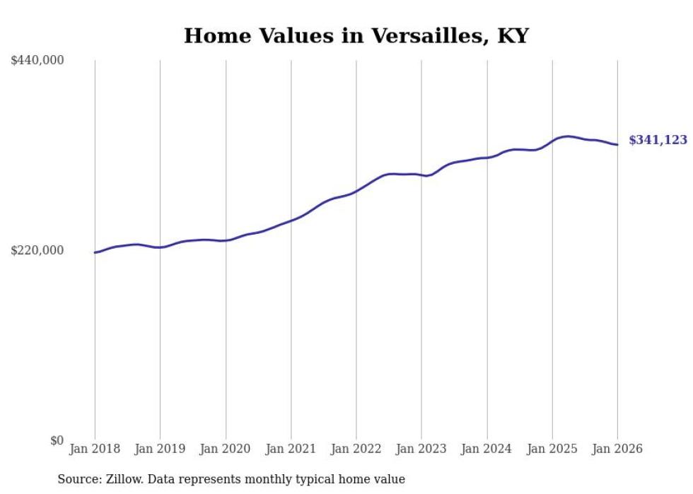 Stacker compiled a list of cities with the most expensive homes in the Lexington metro area using data from Zillow. Charts show the monthly typical home value since January 2018. All 10 cities and towns with data available were included in the list.
