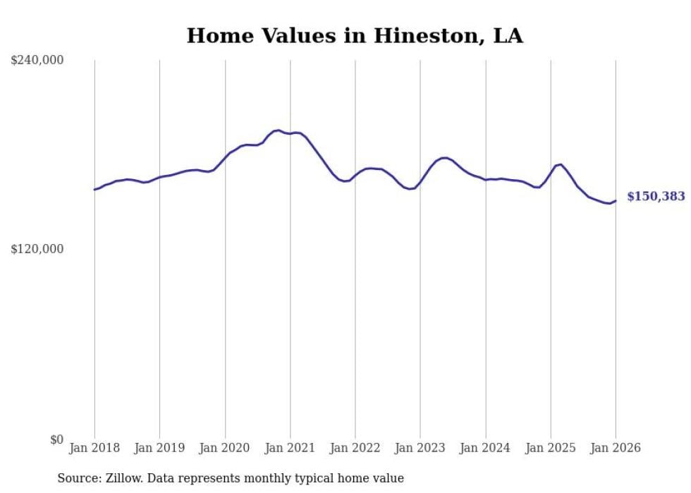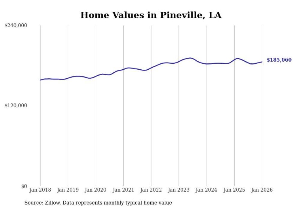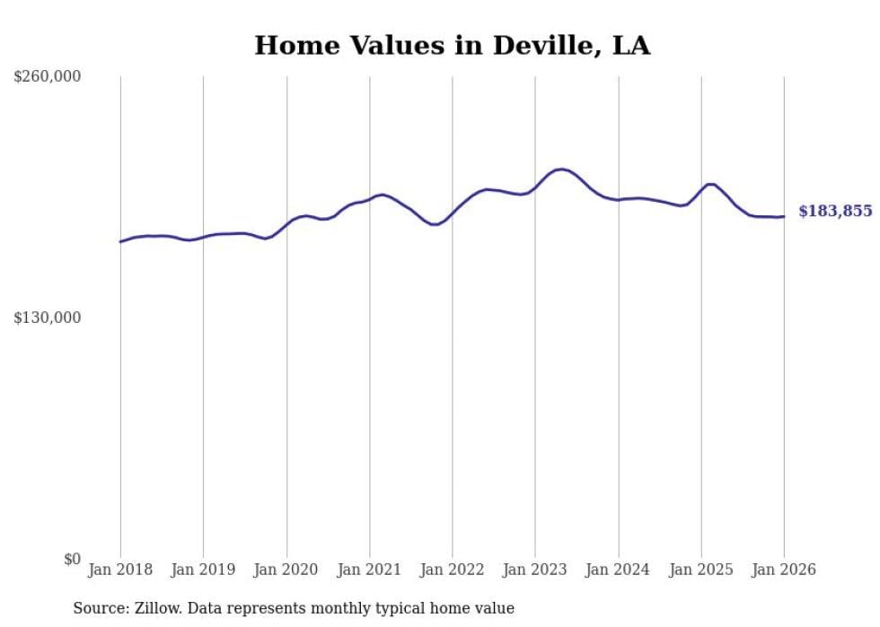Stacker compiled a list of cities with the most expensive homes in the Alexandria, LA metro area using data from Zillow. Charts show the monthly typical home value since January 2018.
