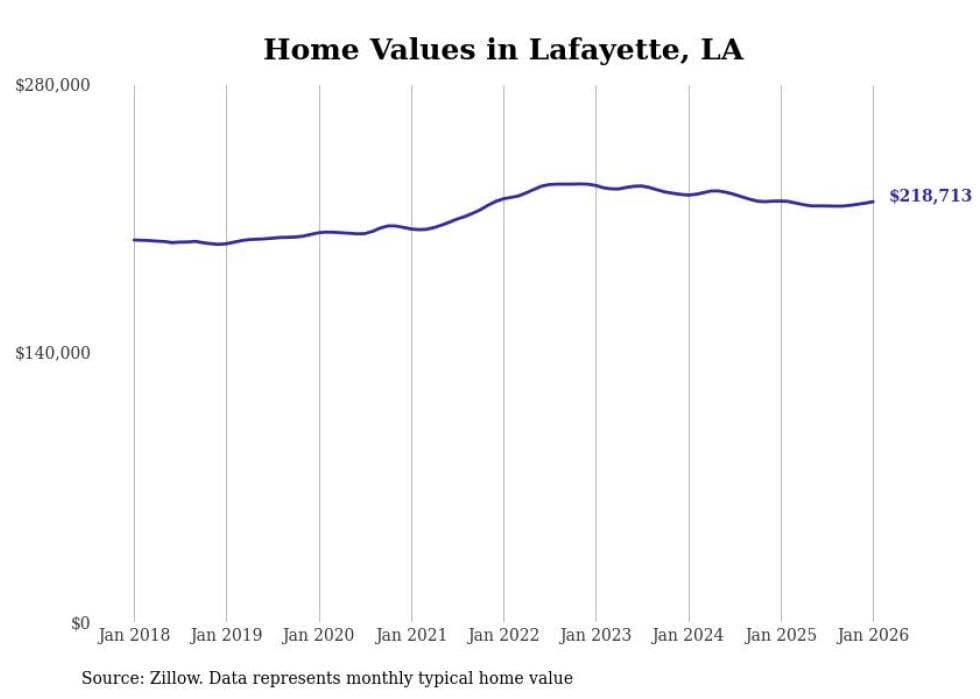 Stacker compiled a list of cities with the most expensive homes in the Lafayette, LA metro area using data from Zillow. Charts show the monthly typical home value since January 2018.