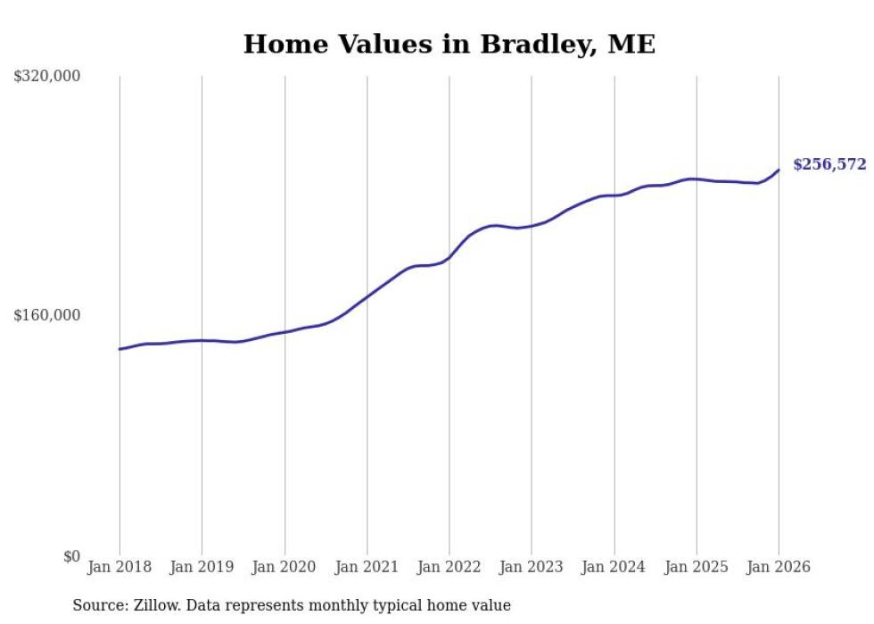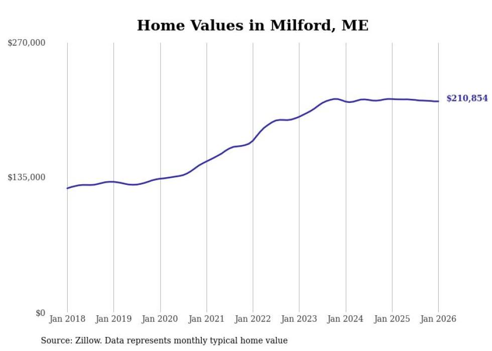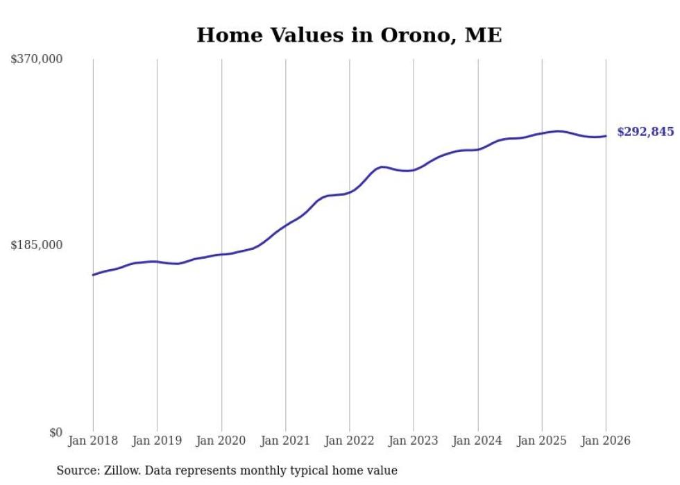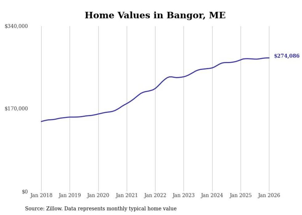 Stacker compiled a list of cities with the most expensive homes in the Bangor metro area using data from Zillow. Charts show the monthly typical home value since January 2018. Data was available for 35 cities and towns.