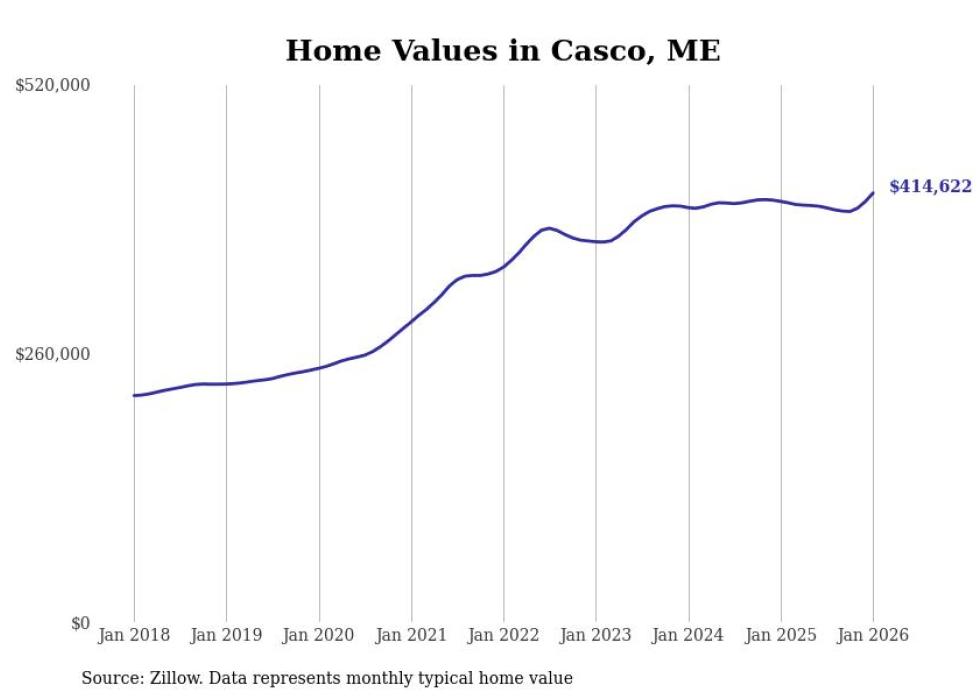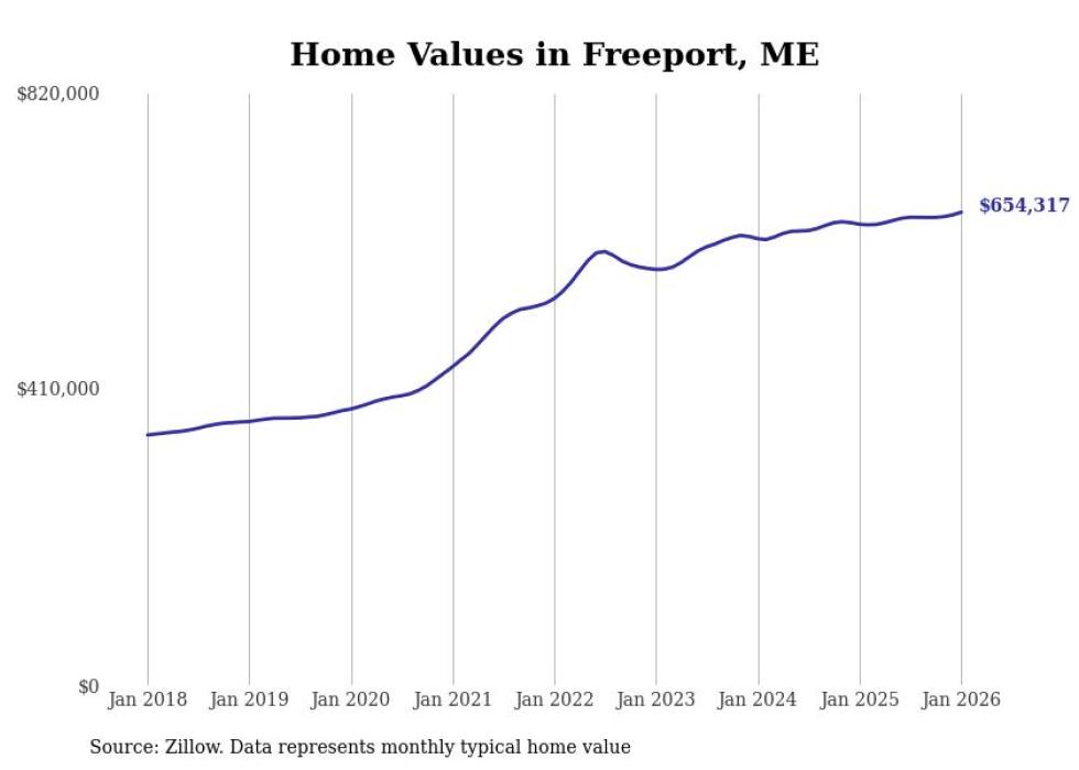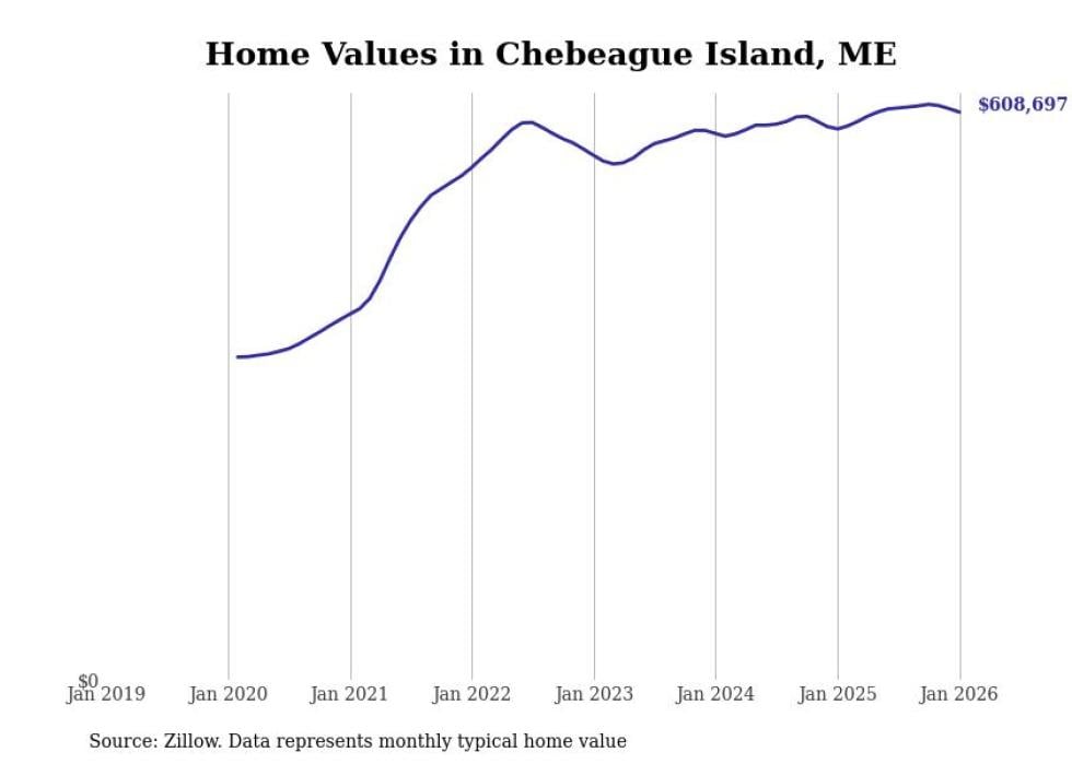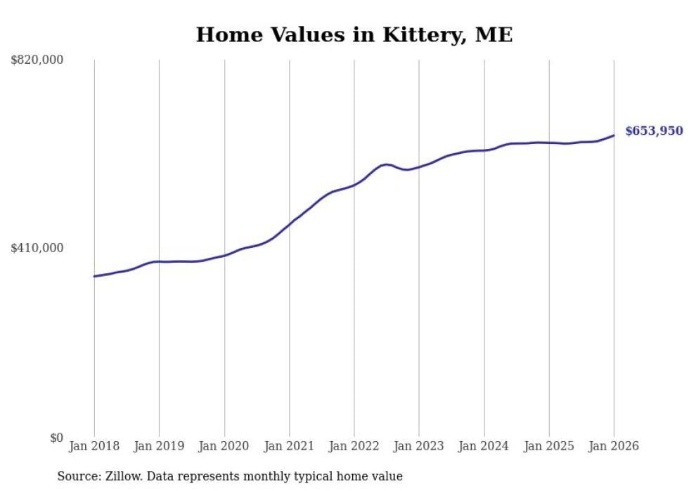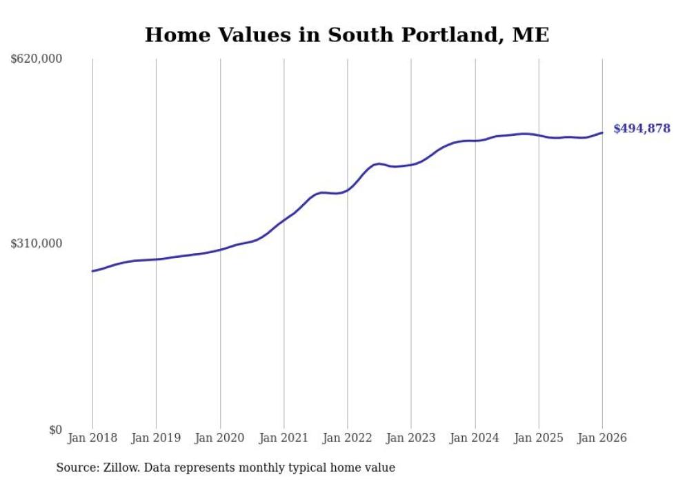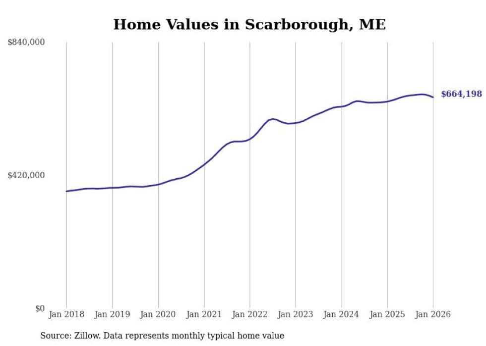 Stacker compiled a list of cities with the most expensive homes in the Portland-South Portland, ME metro area using data from Zillow. Charts show the monthly typical home value since January 2018.