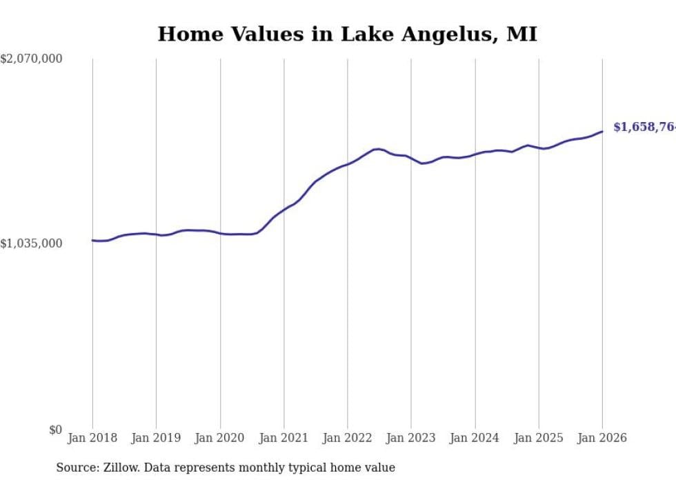 Stacker compiled a list of cities with the most expensive homes in the Detroit-Warren-Dearborn, MI metro area using data from Zillow. Charts show the monthly typical home value since January 2018.