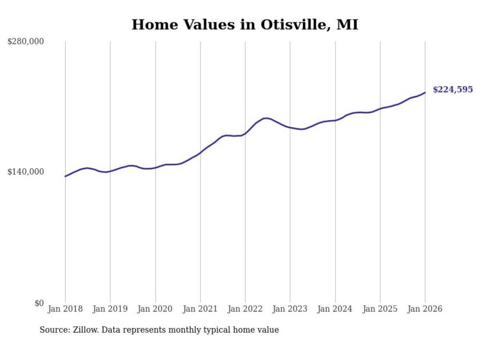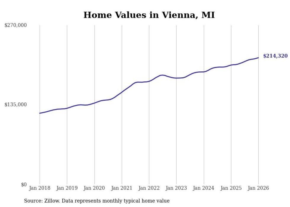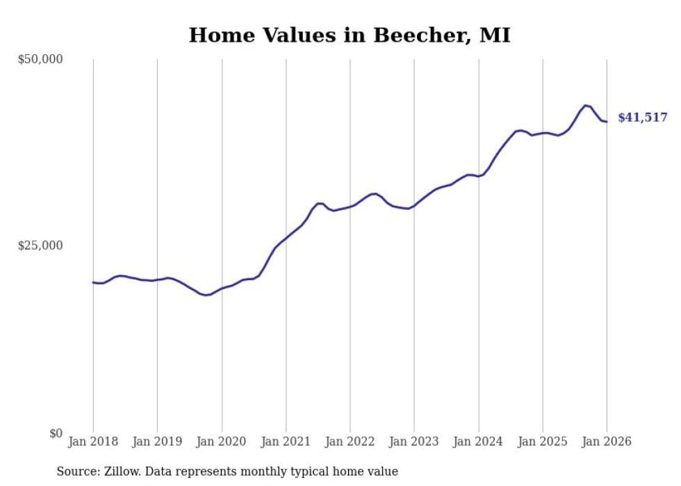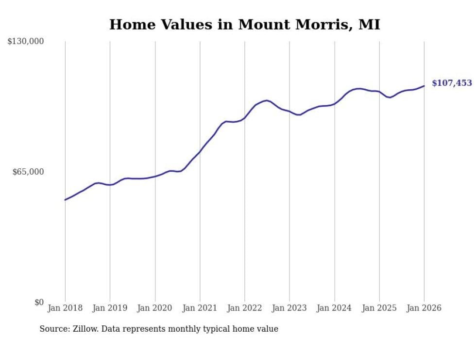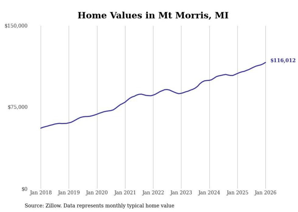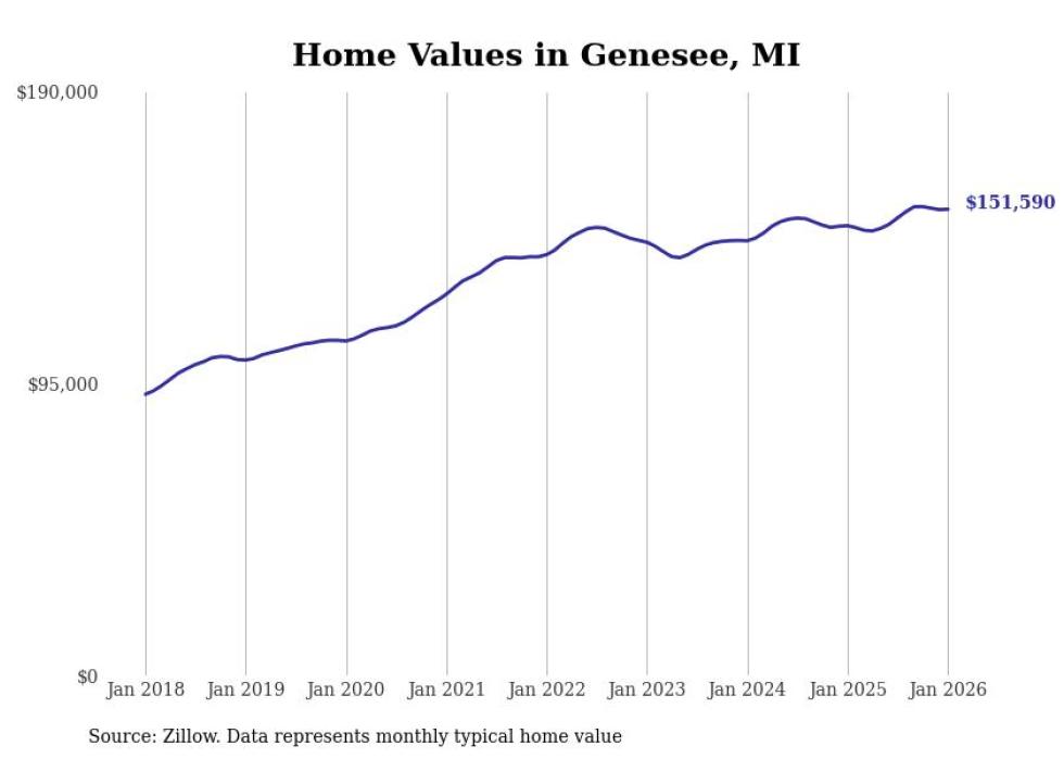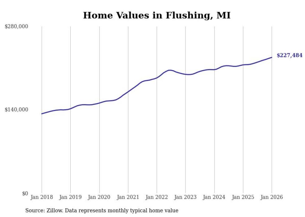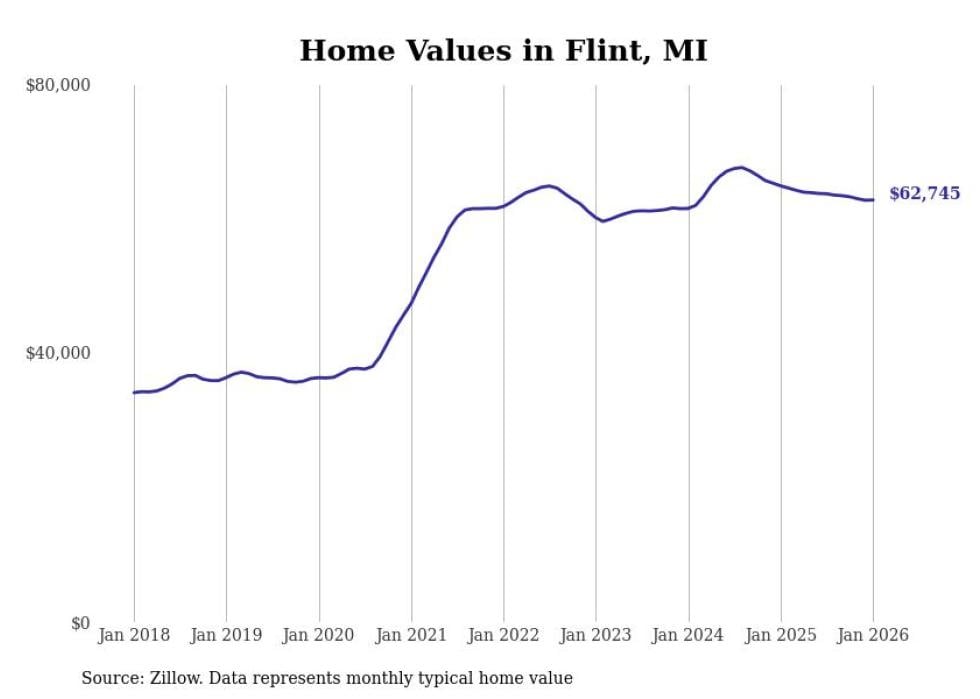 Stacker compiled a list of cities with the most expensive homes in the Flint, MI metro area using data from Zillow. Charts show the monthly typical home value since January 2018.