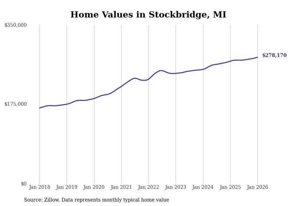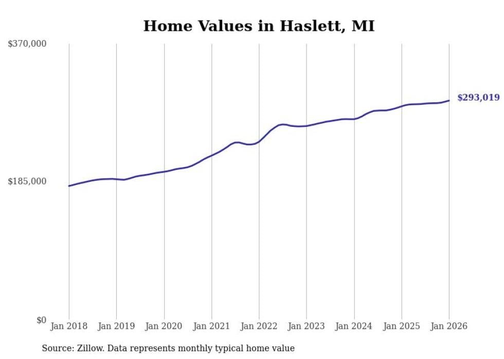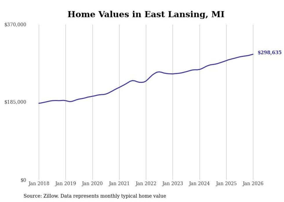 Stacker compiled a list of cities with the most expensive homes in the Lansing-East Lansing, MI metro area using data from Zillow. Charts show the monthly typical home value since January 2018.