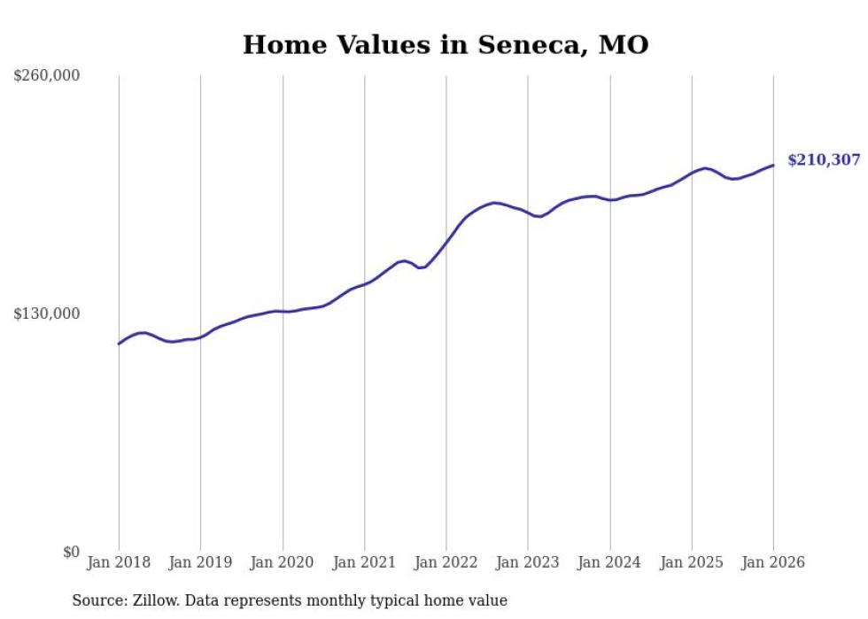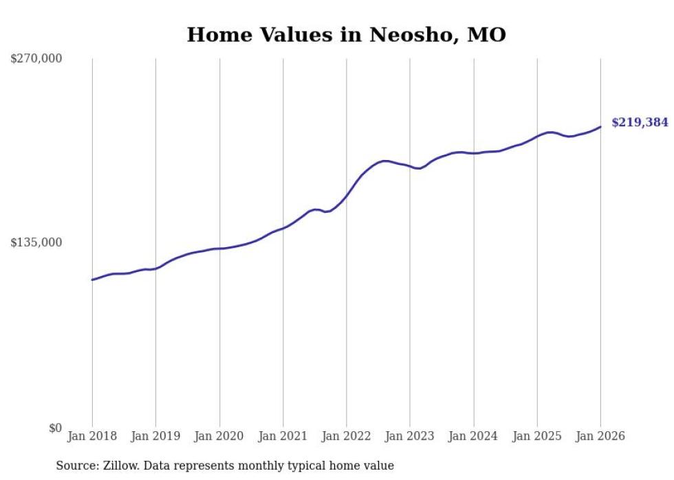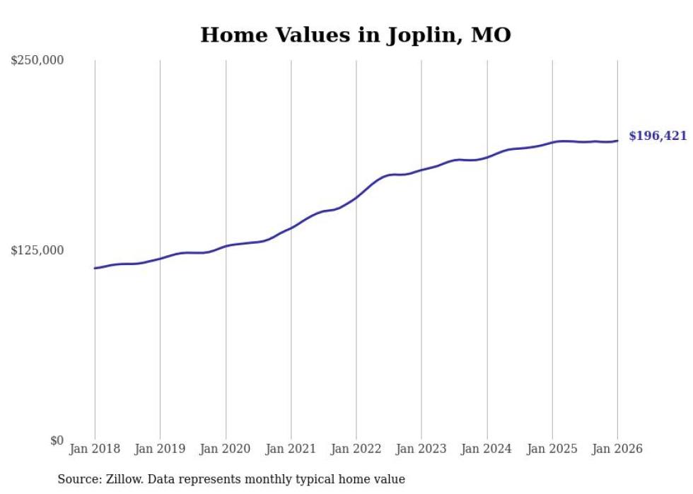 Stacker compiled a list of cities with the most expensive homes in the Joplin metro area using data from Zillow. Charts show the monthly typical home value since January 2018. All 20 cities and towns with data available were included in the list.