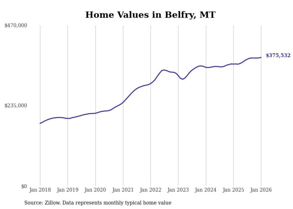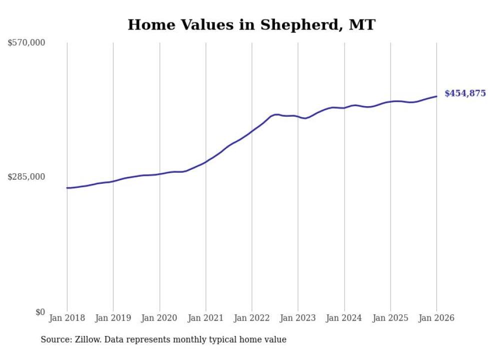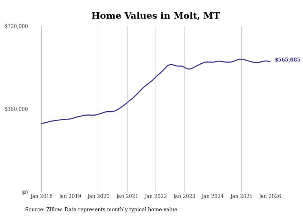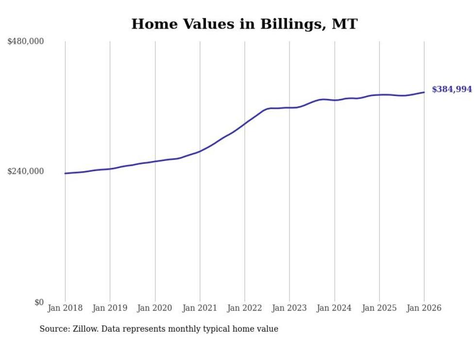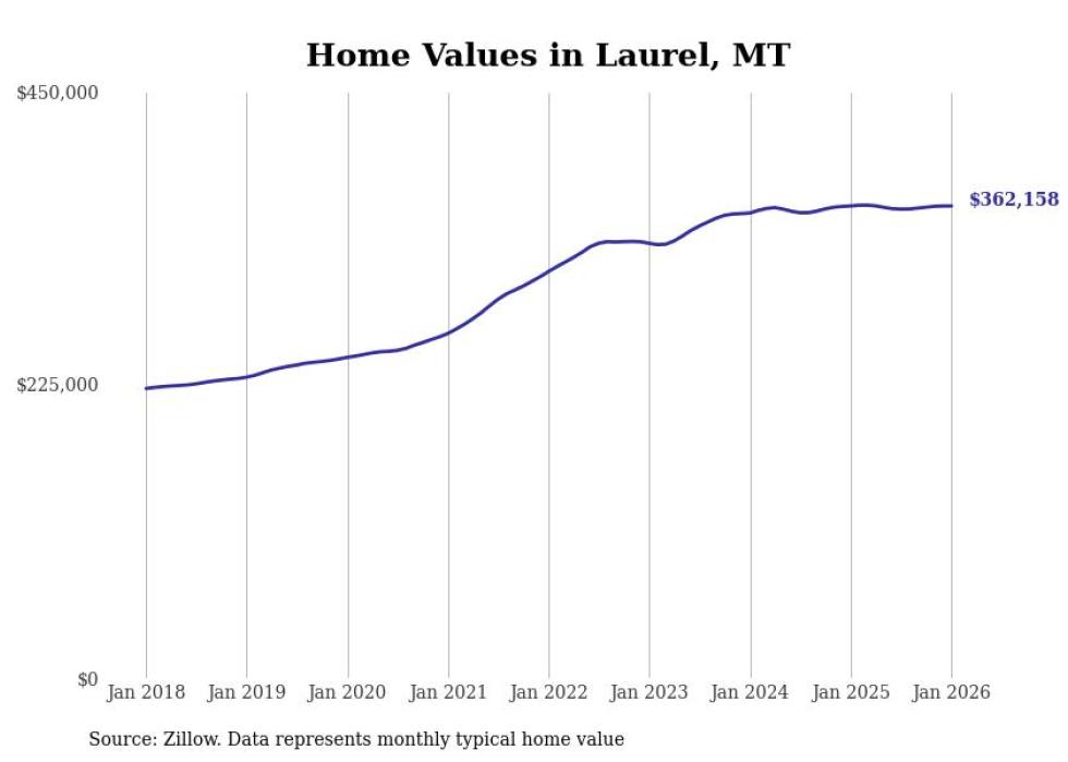 Stacker compiled a list of cities with the most expensive homes in the Billings metro area using data from Zillow. Charts show the monthly typical home value since January 2018. All 21 cities and towns with data available were included in the list.