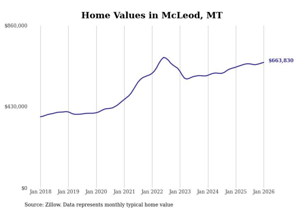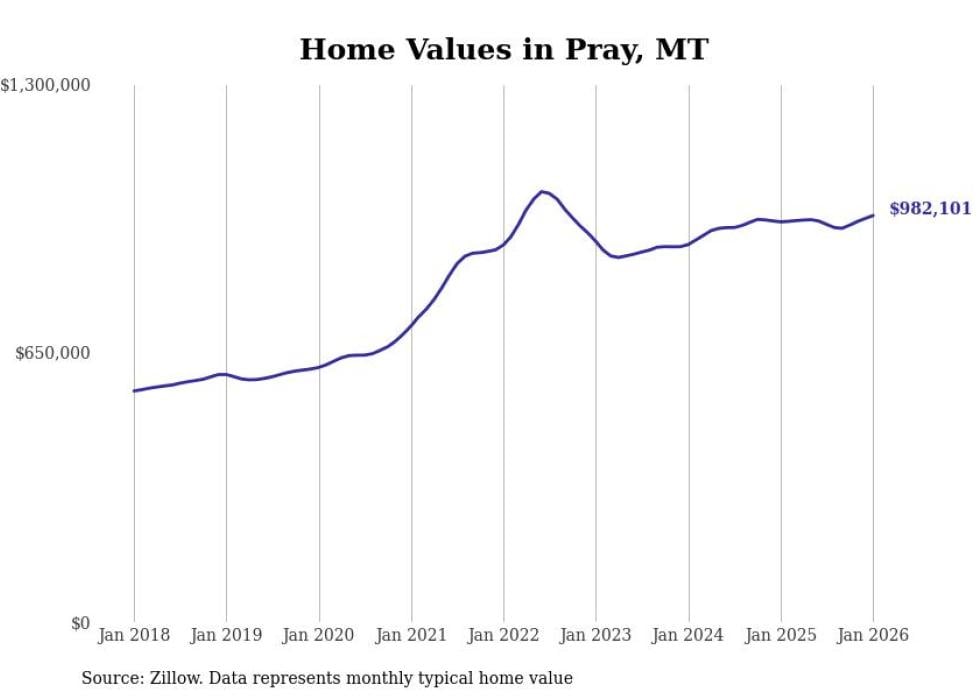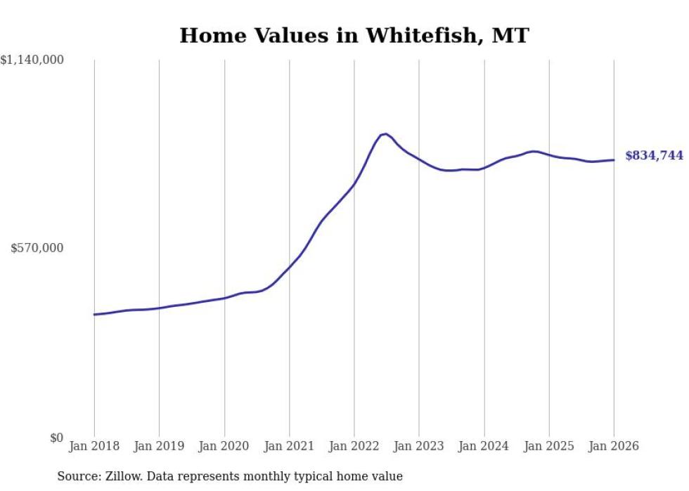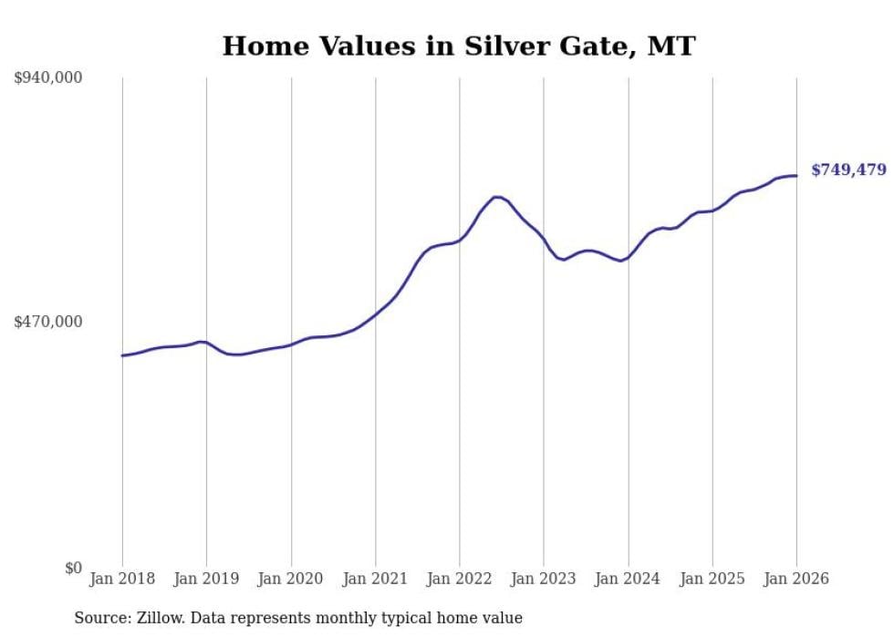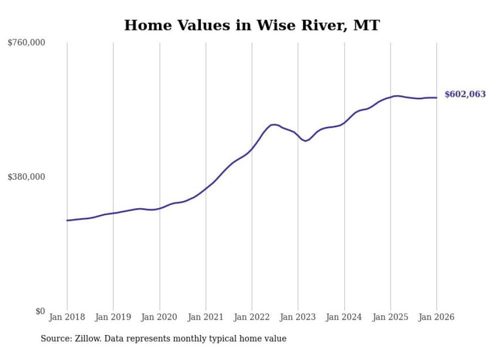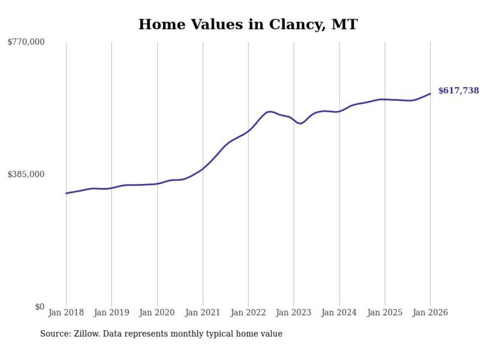Stacker compiled a list of cities with the most expensive homes in Montana using data from Zillow. Cities are ranked by the Zillow Home Values Index for all homes as of January 2026. The charts in this story were created automatically using Matplotlib.