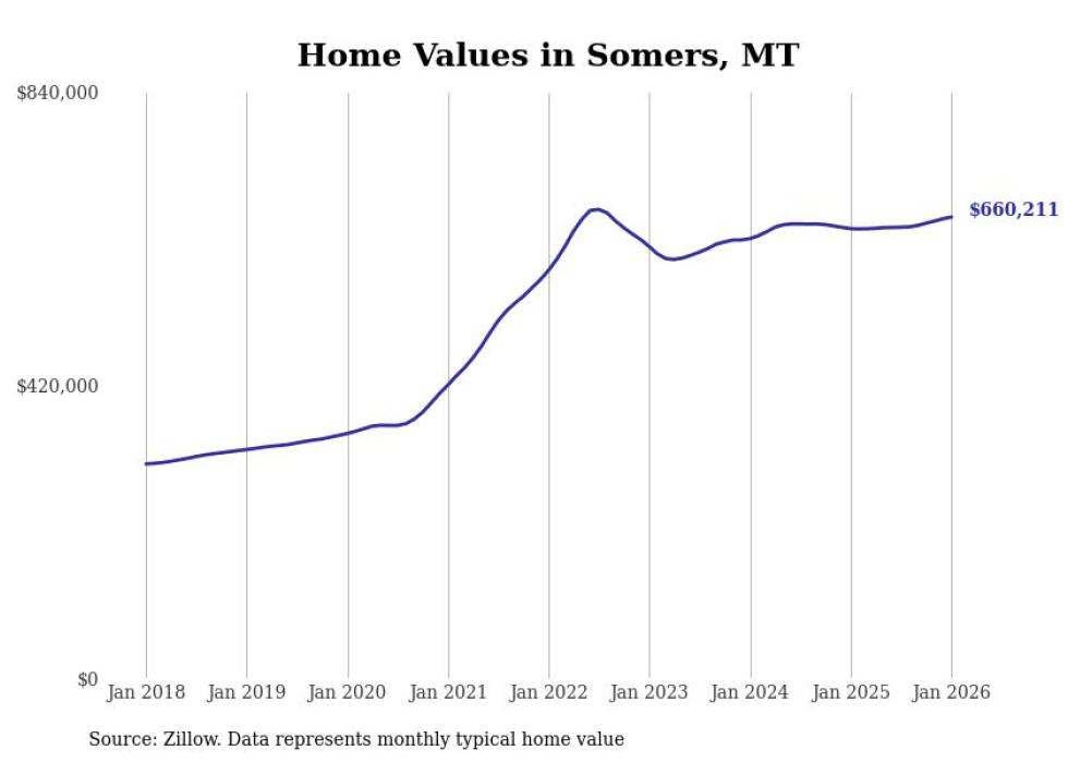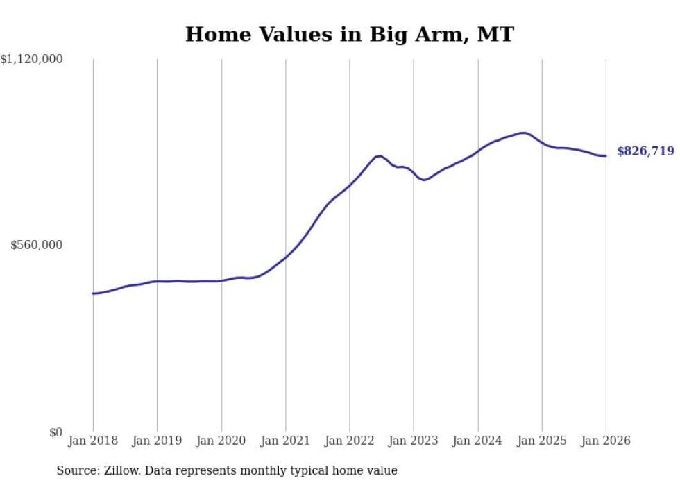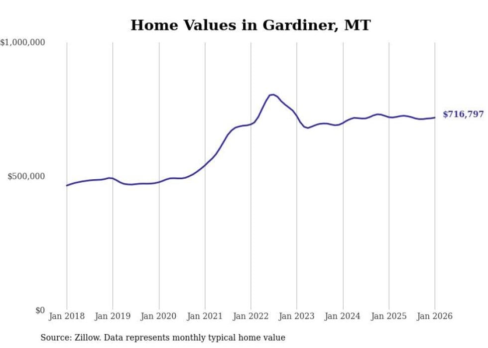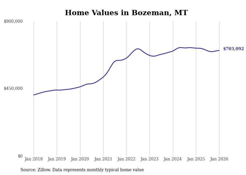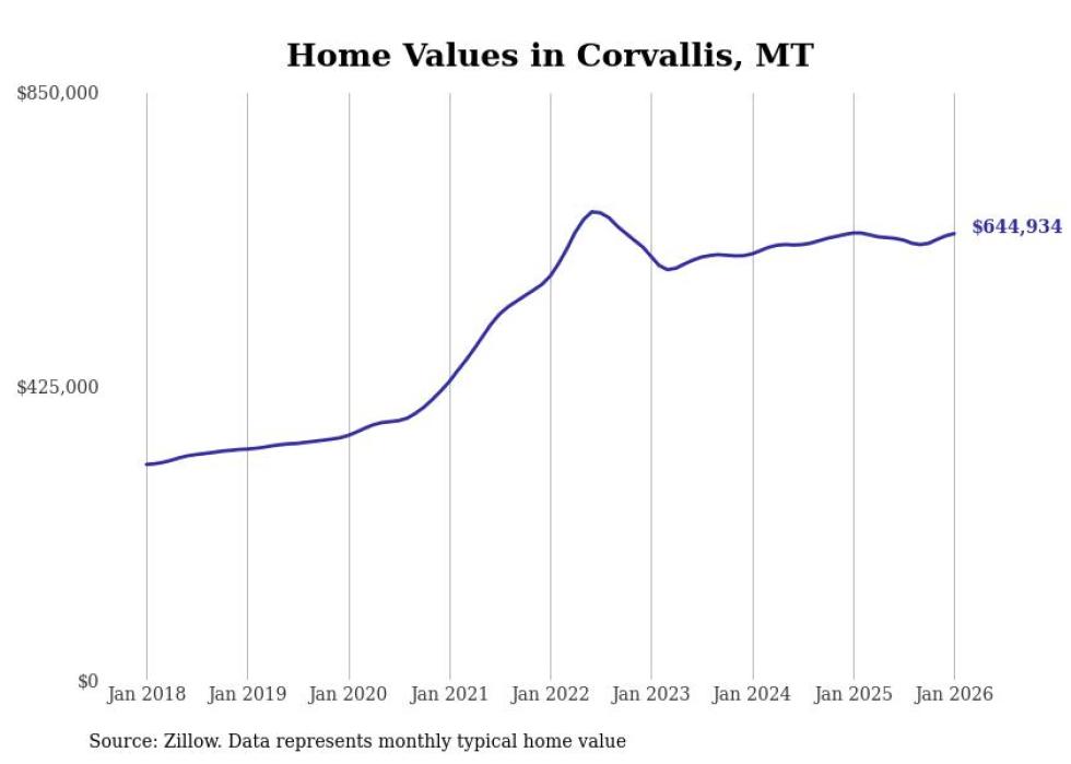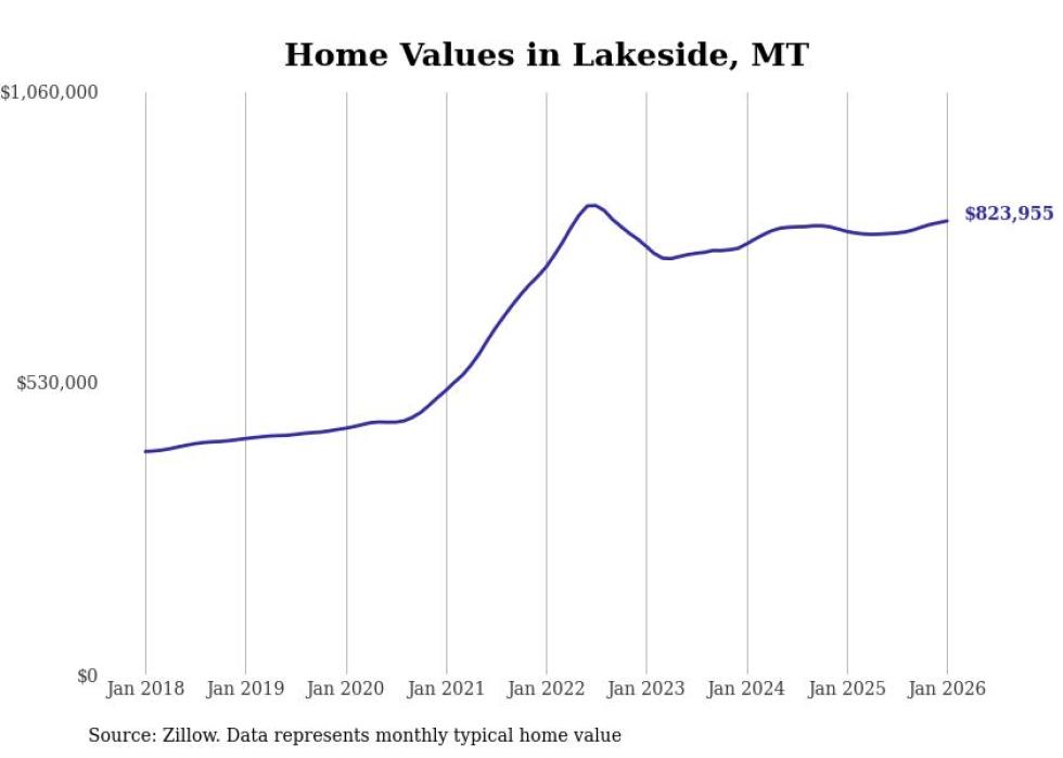 Stacker compiled a list of cities with the most expensive homes in Montana using data from Zillow. Cities are ranked by the Zillow Home Values Index for all homes as of January 2026. The charts in this story were created automatically using Matplotlib.