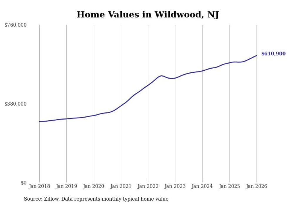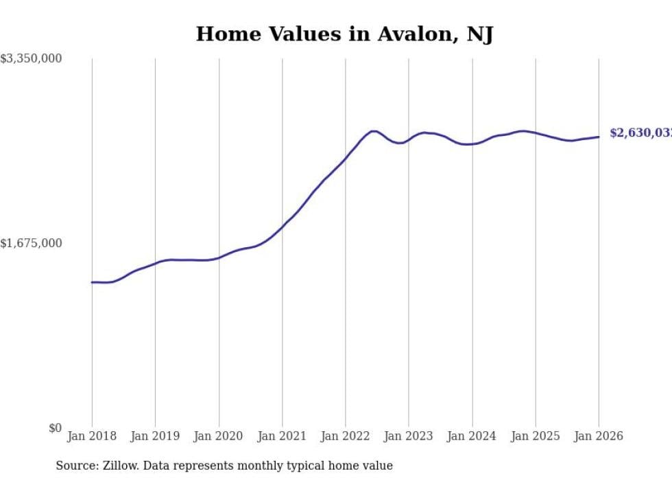 Stacker compiled a list of cities with the most expensive homes in the Ocean City metro area using data from Zillow. Charts show the monthly typical home value since January 2018. All 14 cities and towns with data available were included in the list.