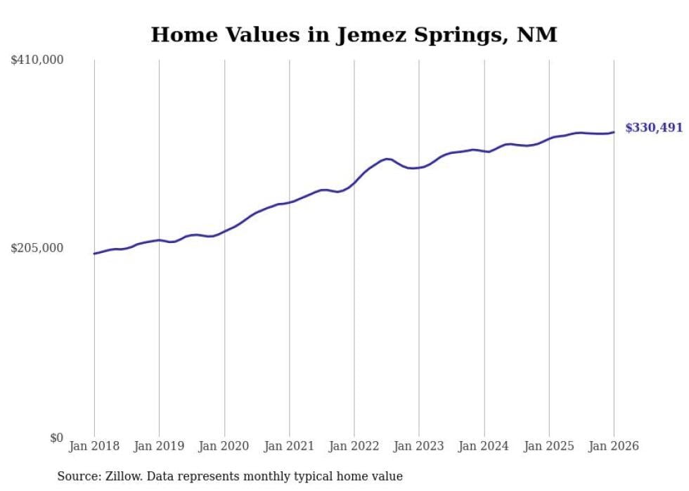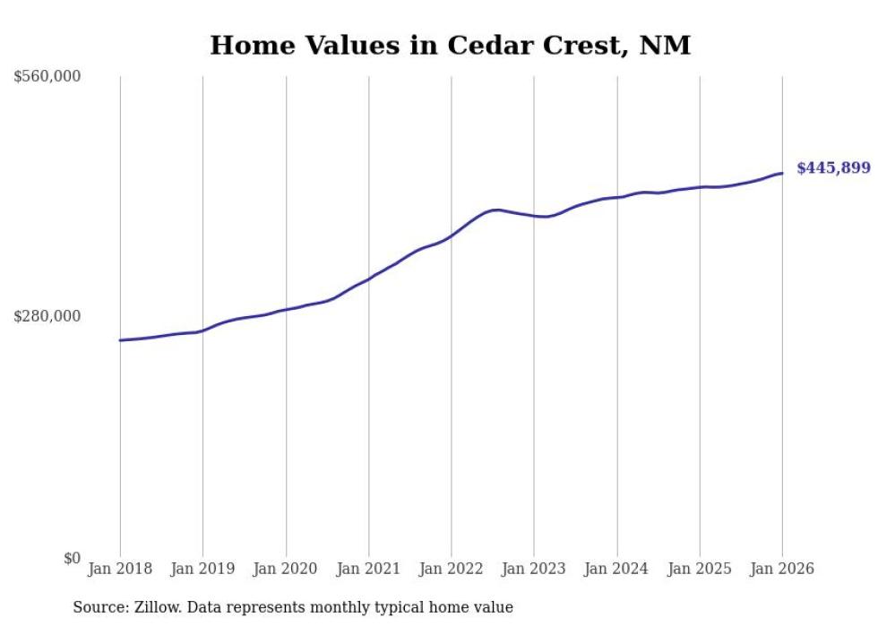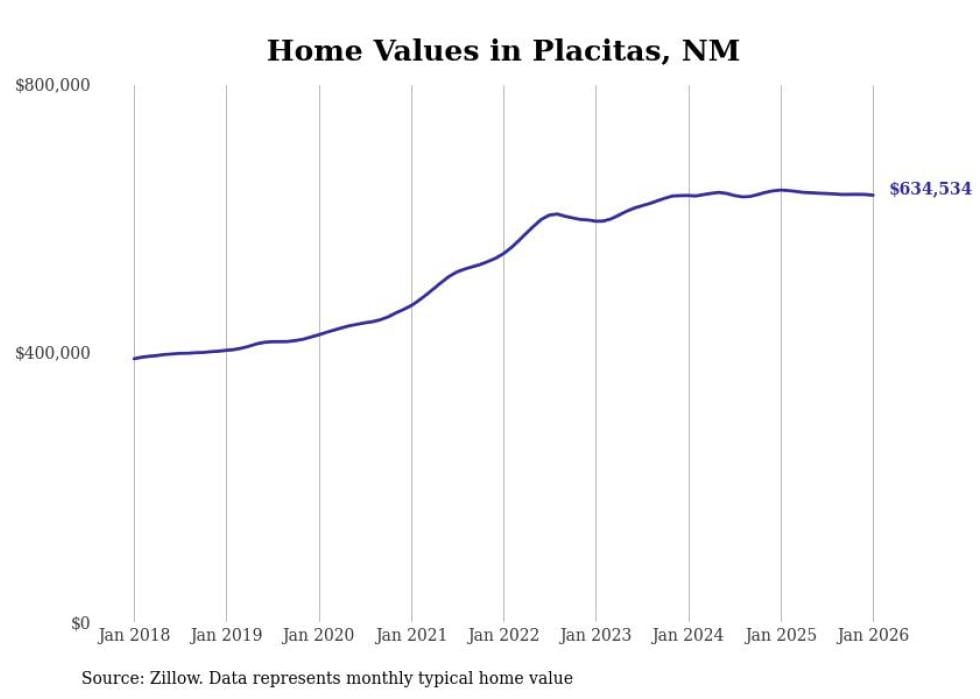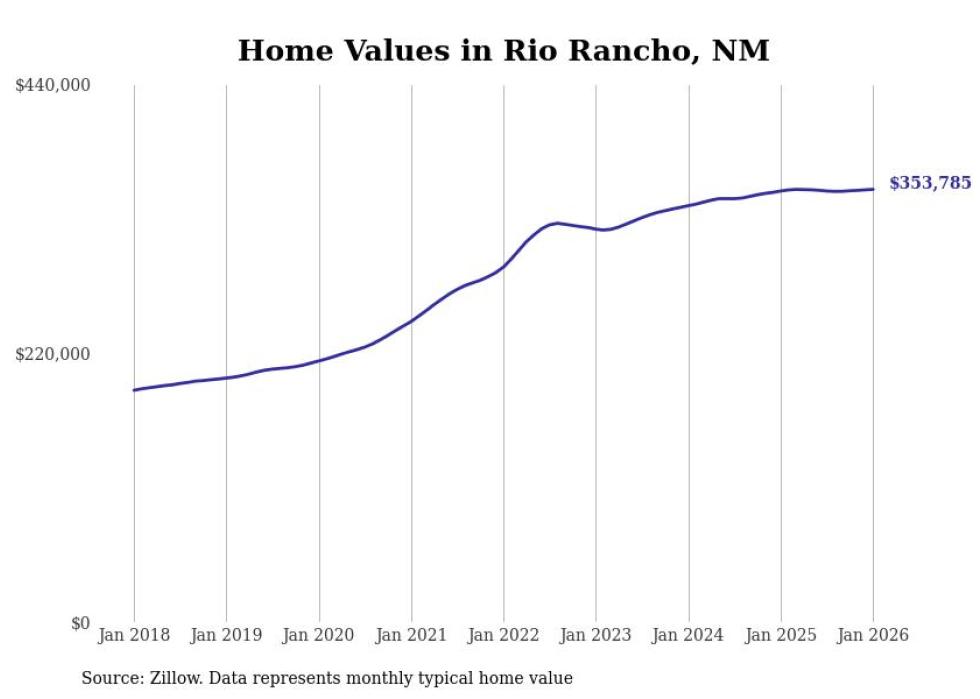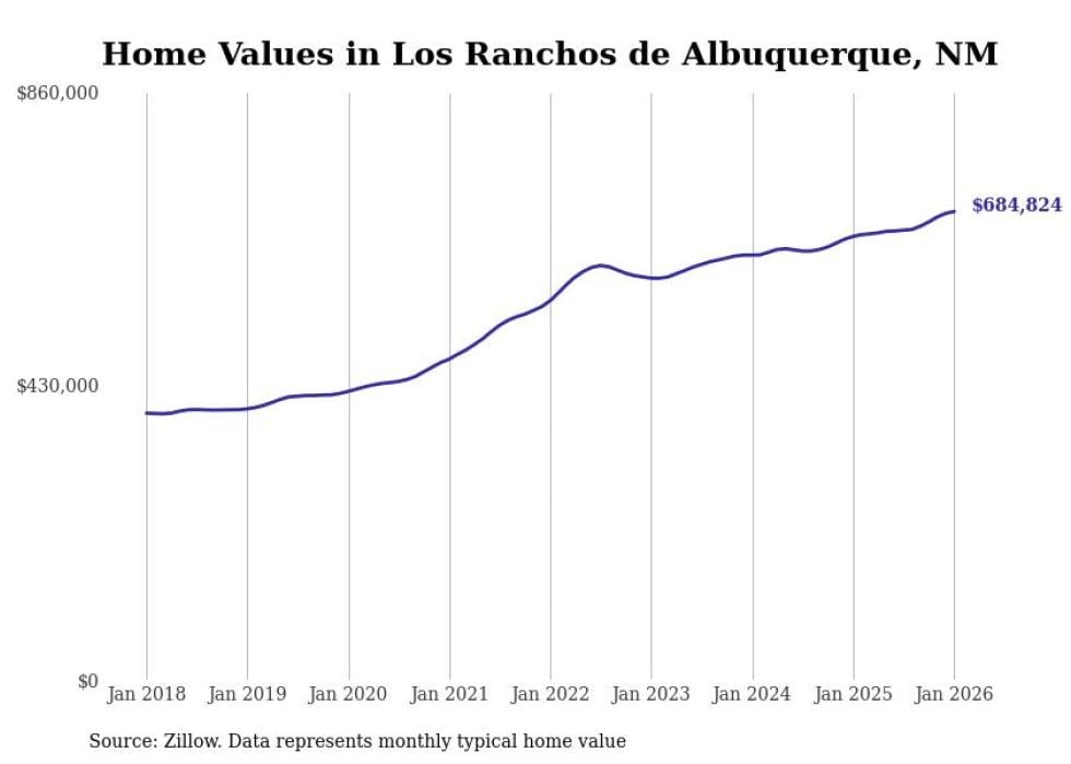 Stacker compiled a list of cities with the most expensive homes in the Albuquerque, NM metro area using data from Zillow. Charts show the monthly typical home value since January 2018.