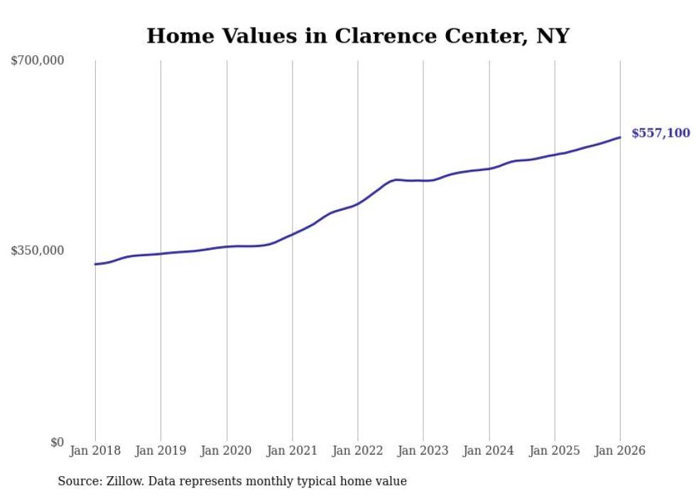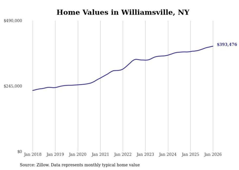 Stacker compiled a list of cities with the most expensive homes in the Buffalo metro area using data from Zillow. Charts show the monthly typical home value since January 2018. All 23 cities and towns with data available were included in the list.