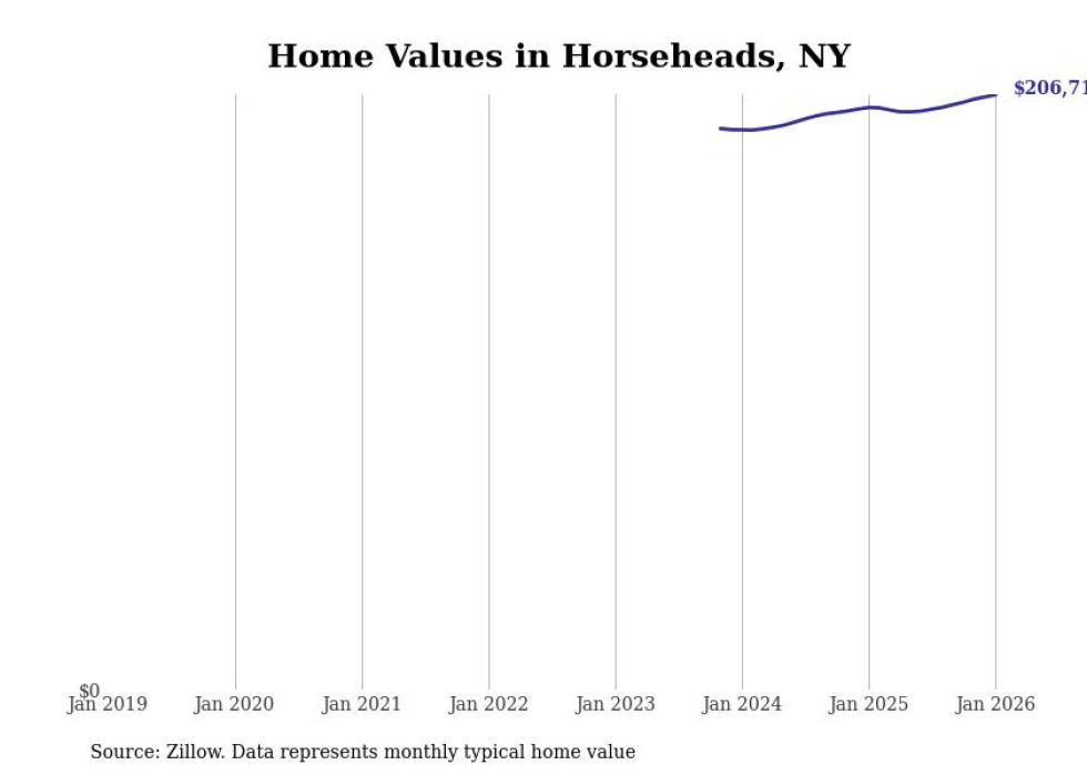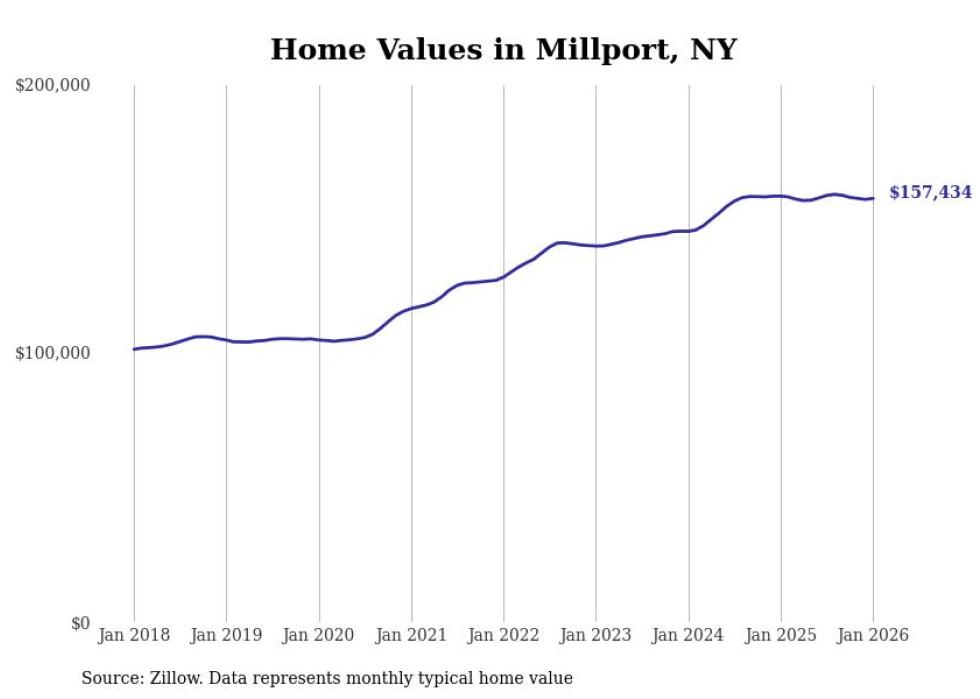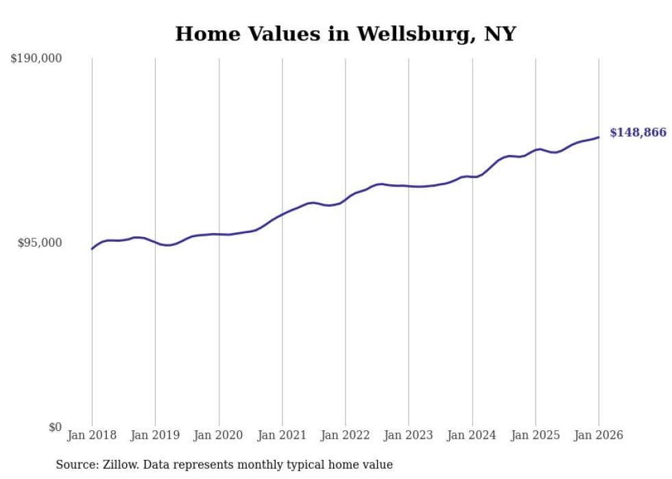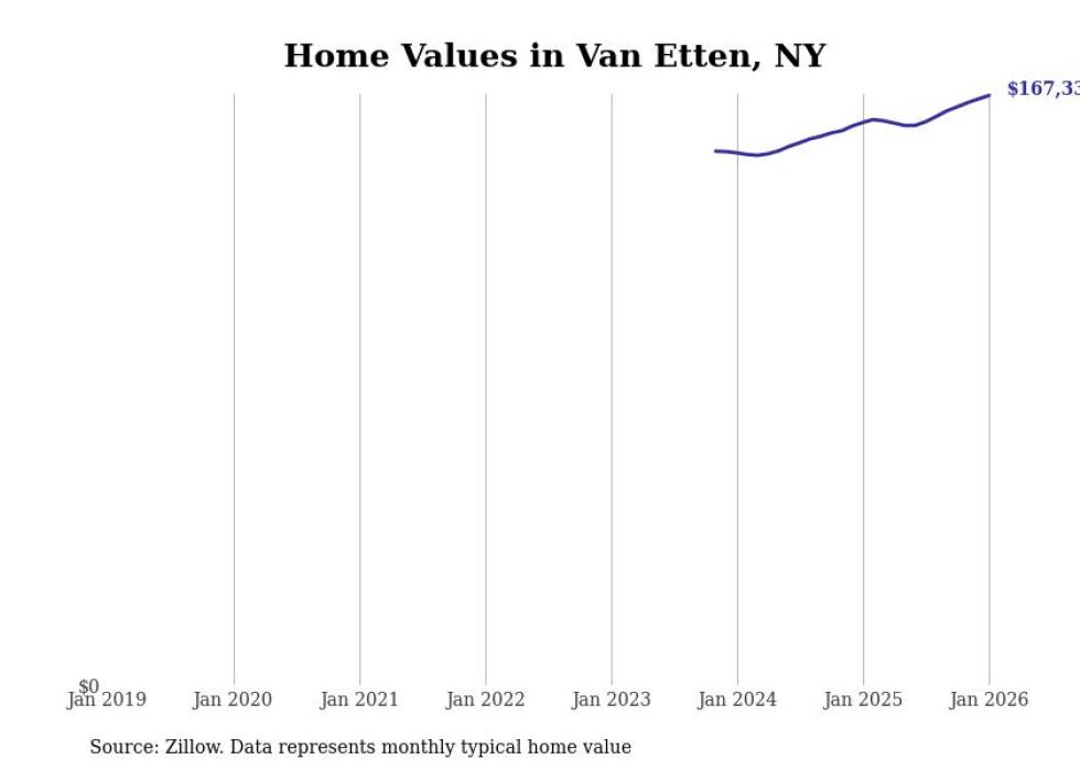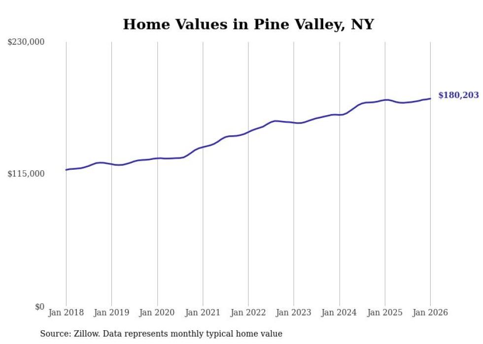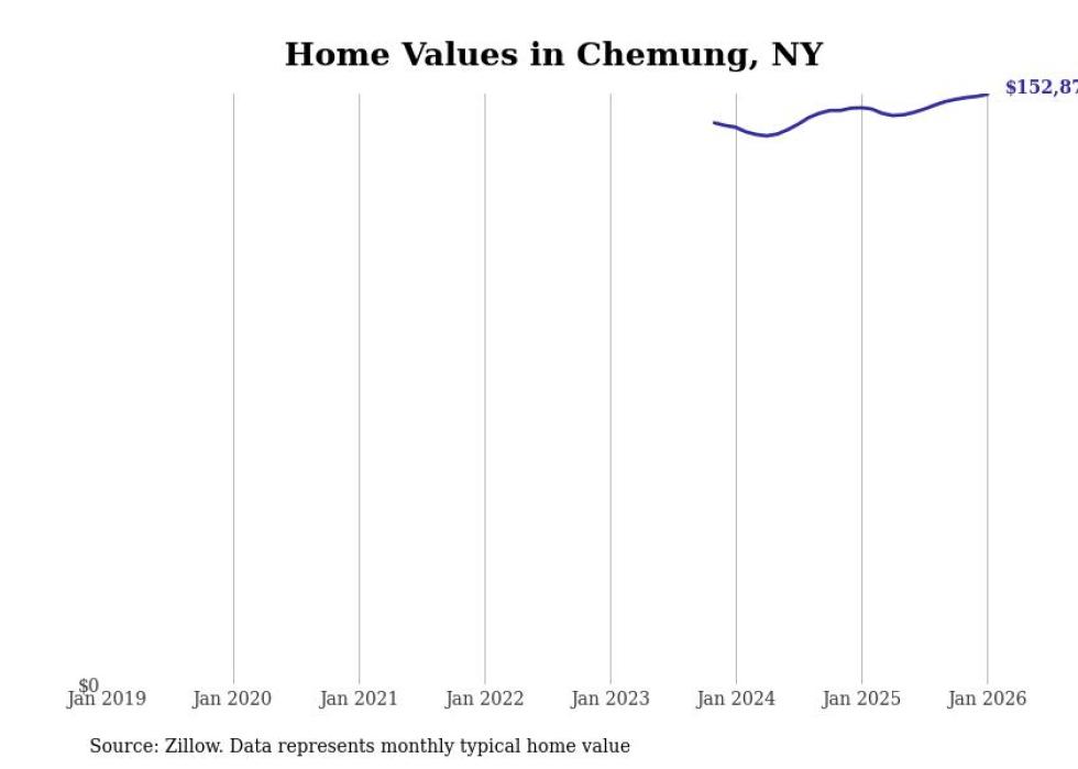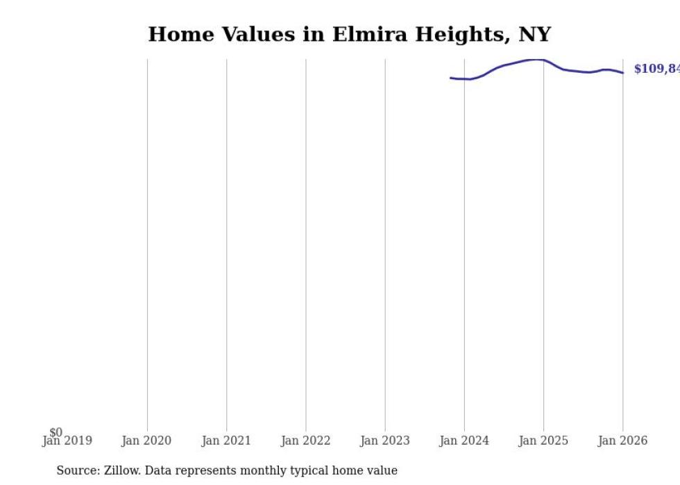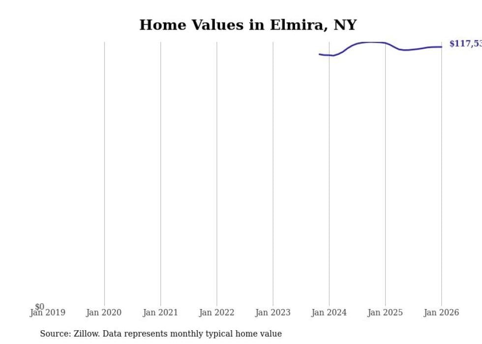 Stacker compiled a list of cities with the most expensive homes in the Elmira, NY metro area using data from Zillow. Charts show the monthly typical home value since January 2018.