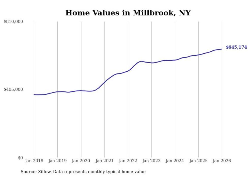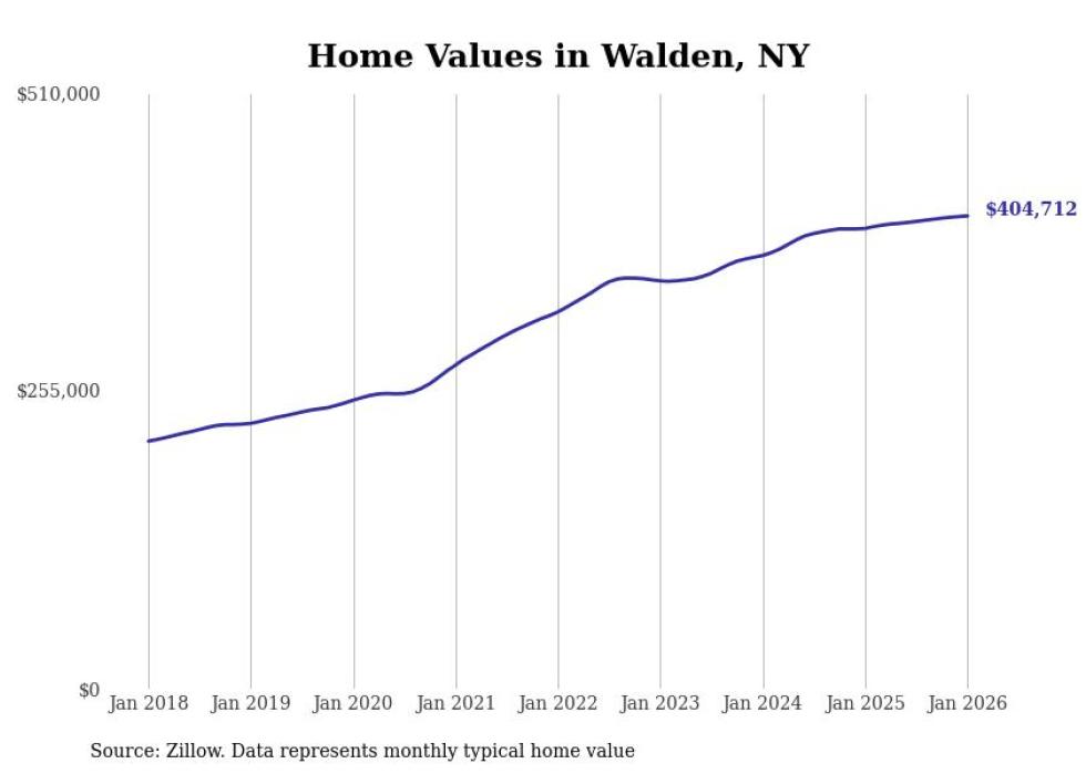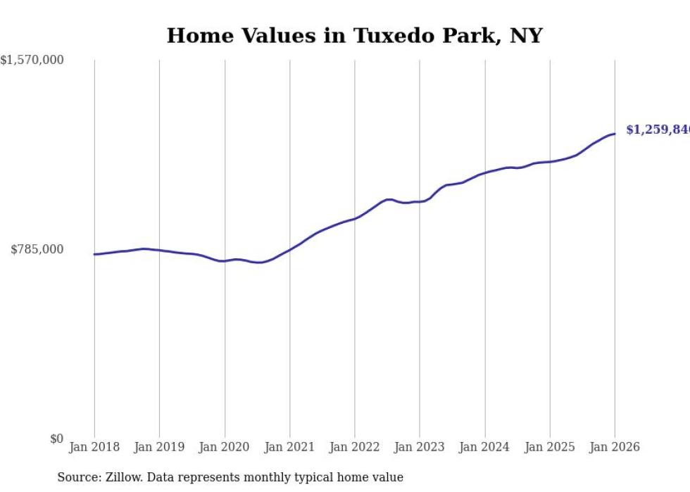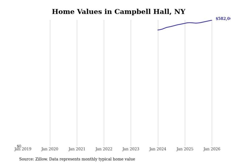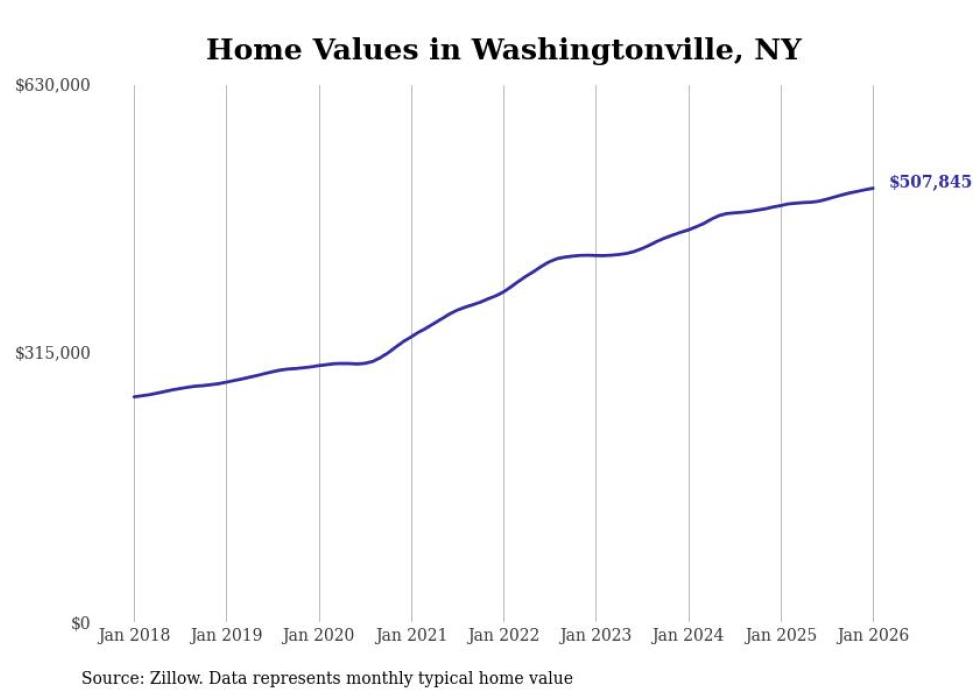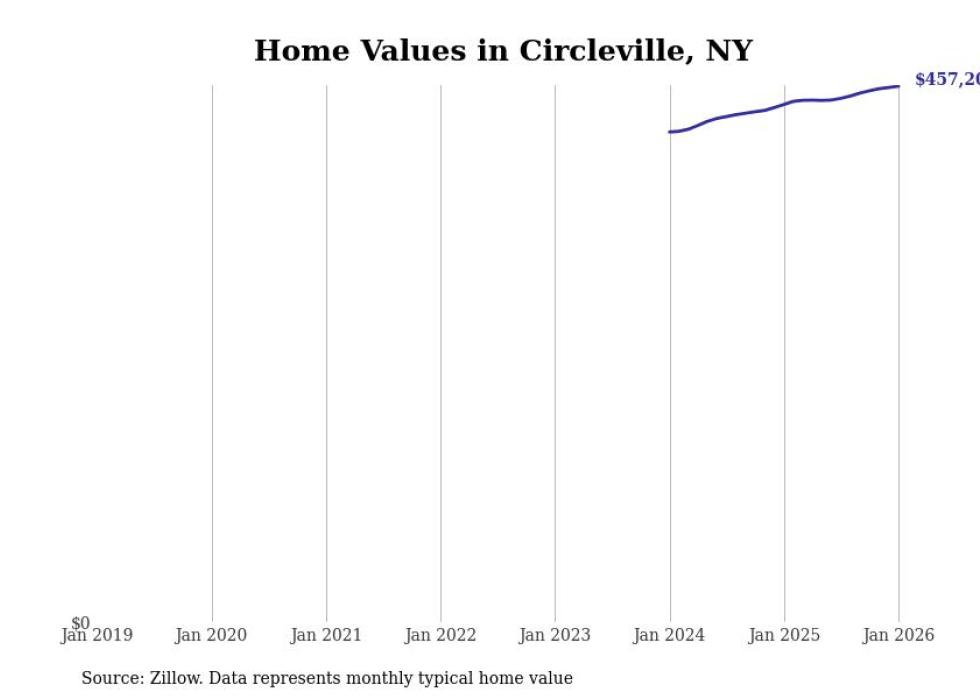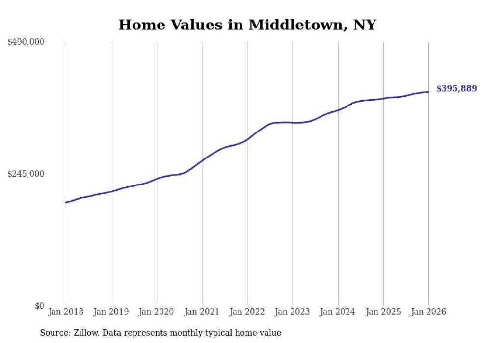Stacker compiled a list of cities with the most expensive homes in the Poughkeepsie-Newburgh-Middletown, NY metro area using data from Zillow. Charts show the monthly typical home value since January 2018.
