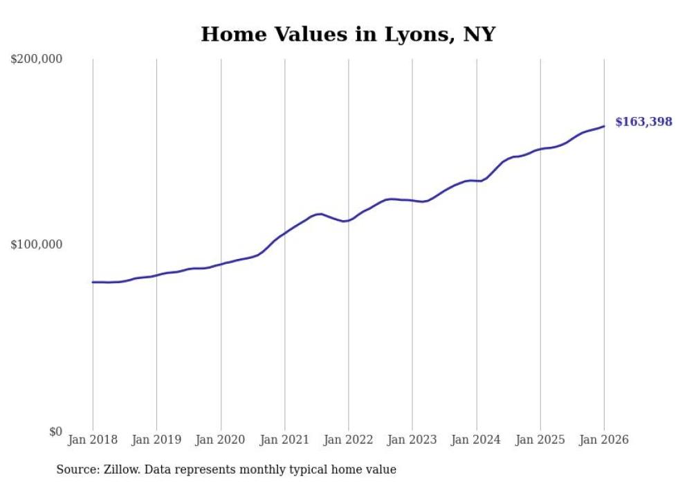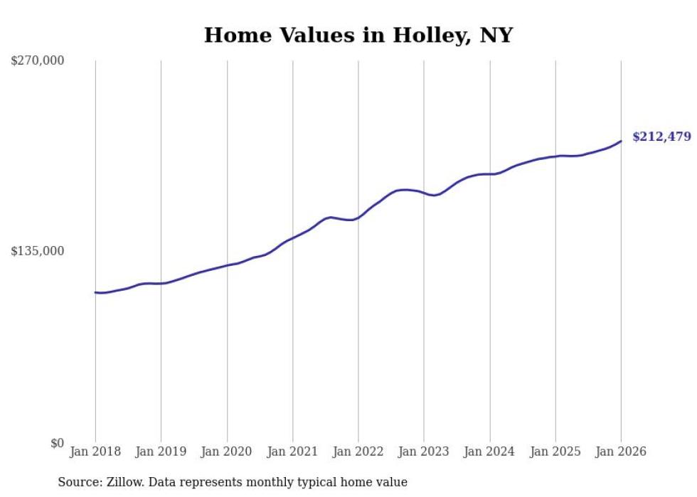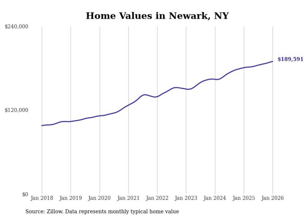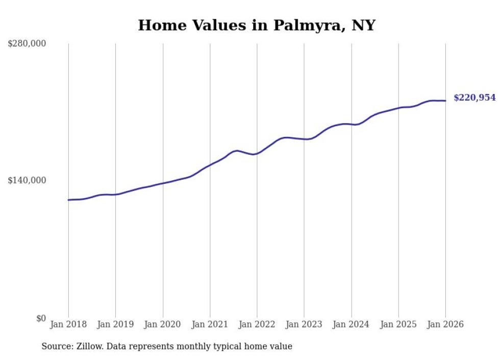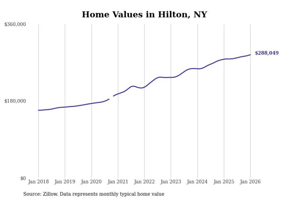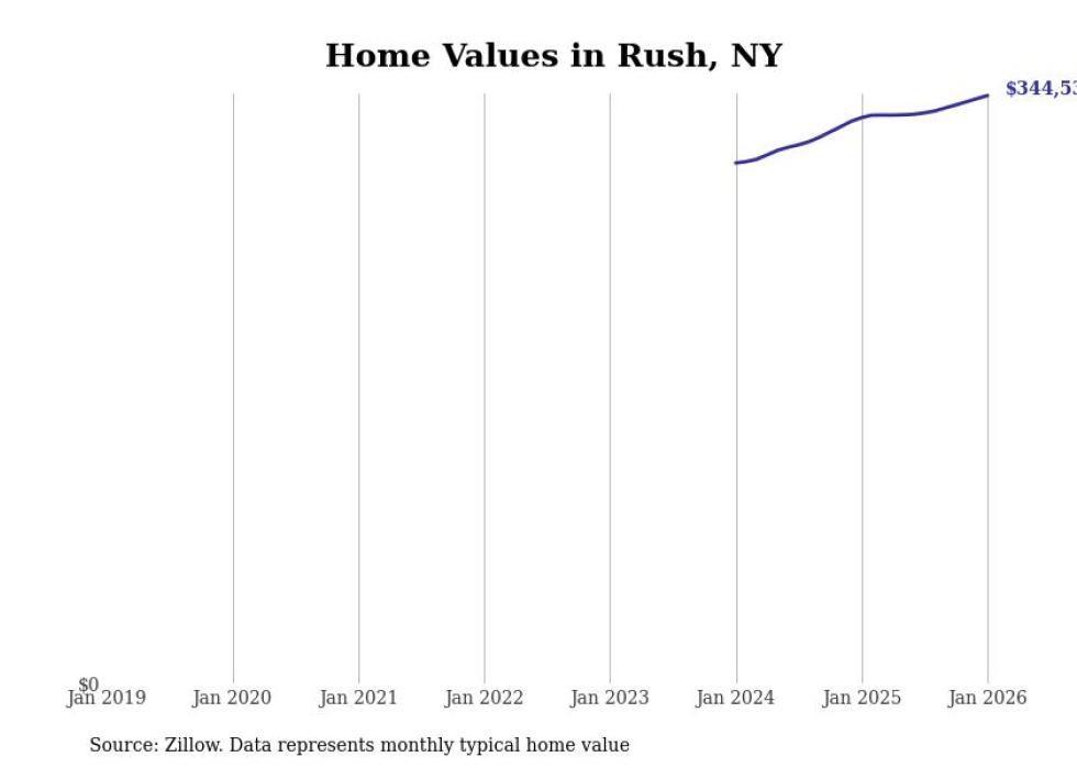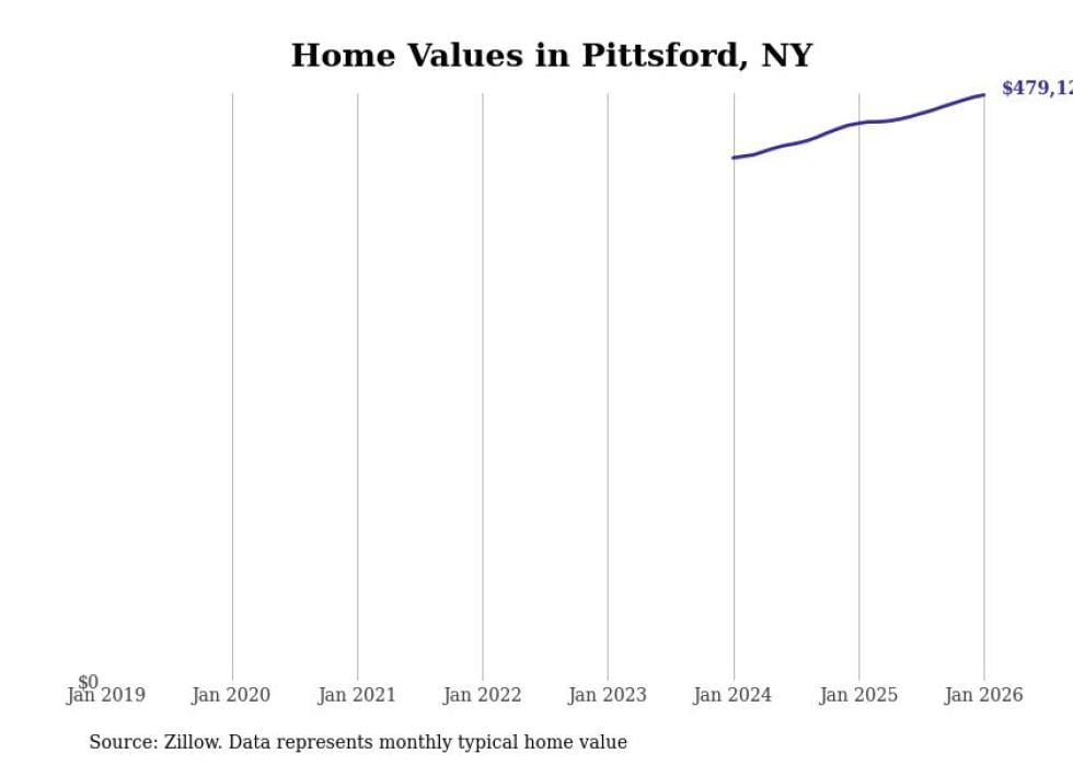 Stacker compiled a list of cities with the most expensive homes in the Rochester, NY metro area using data from Zillow. Charts show the monthly typical home value since January 2018.