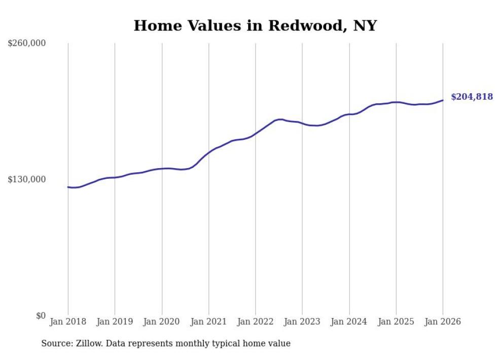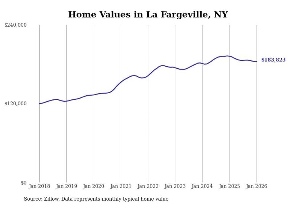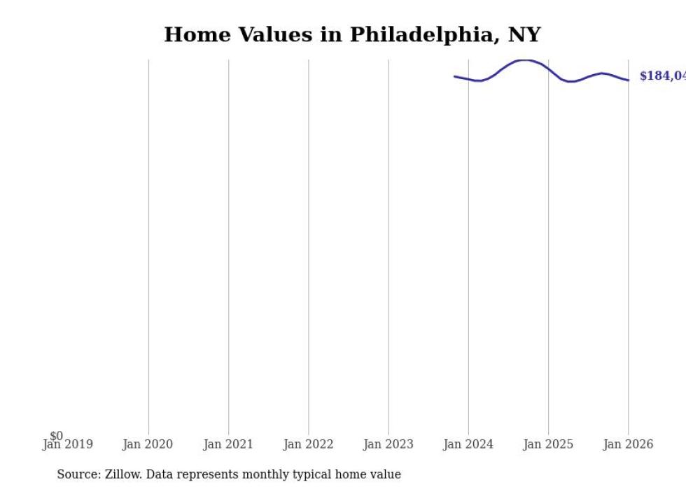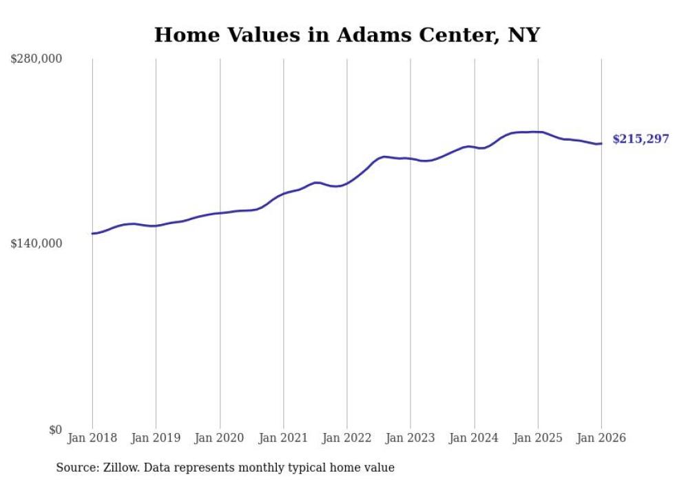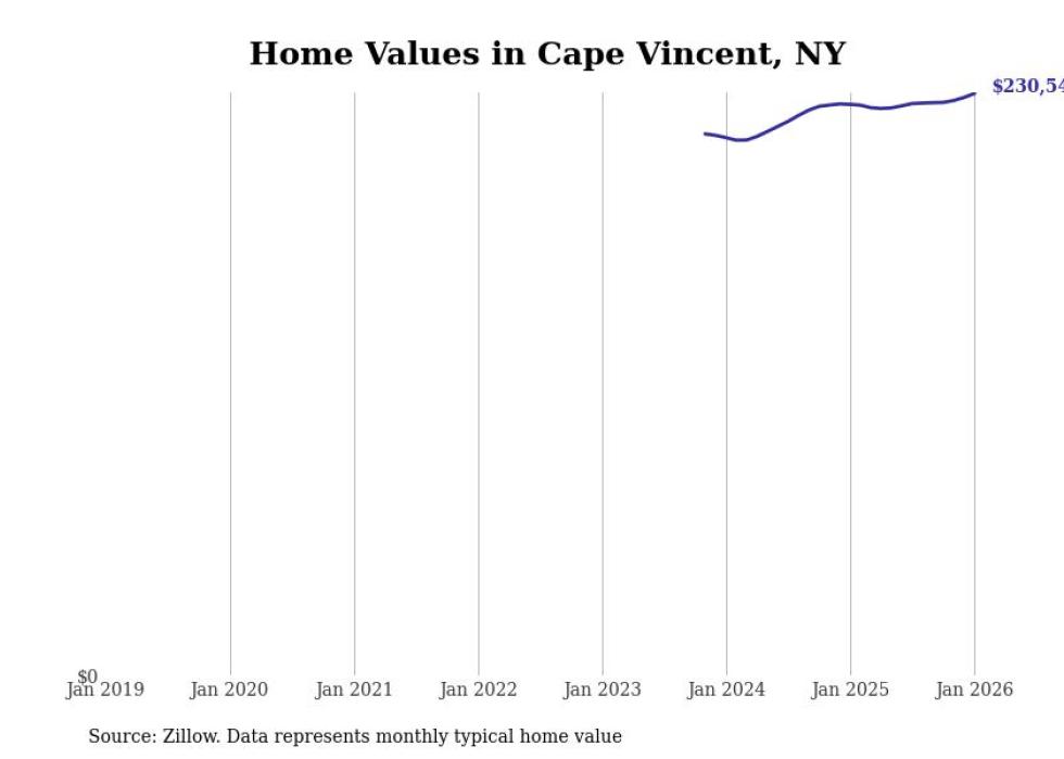 Stacker compiled a list of cities with the most expensive homes in the Watertown-Fort Drum, NY metro area using data from Zillow. Charts show the monthly typical home value since January 2018.