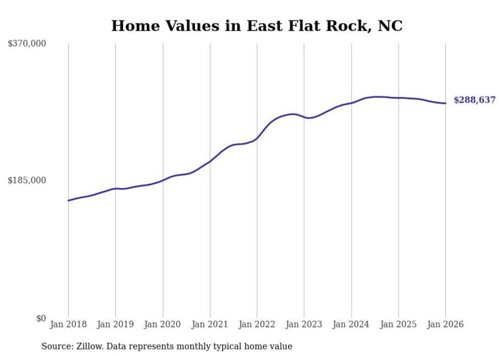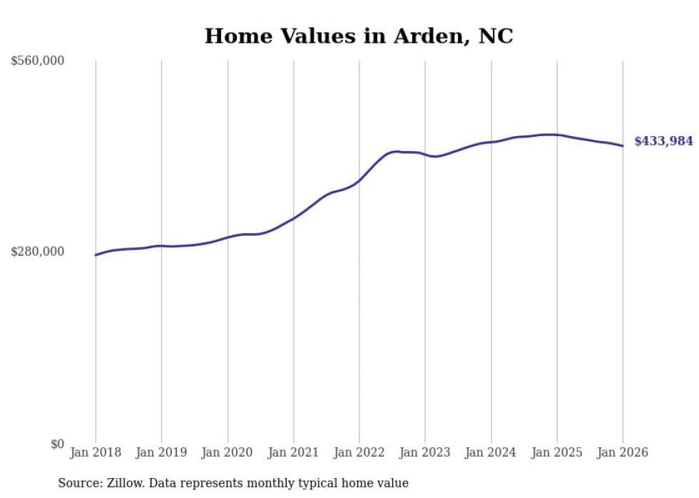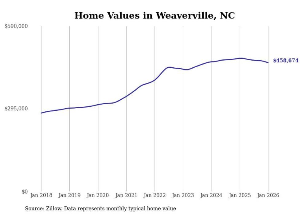 Stacker compiled a list of cities with the most expensive homes in the Asheville, NC metro area using data from Zillow. Charts show the monthly typical home value since January 2018.