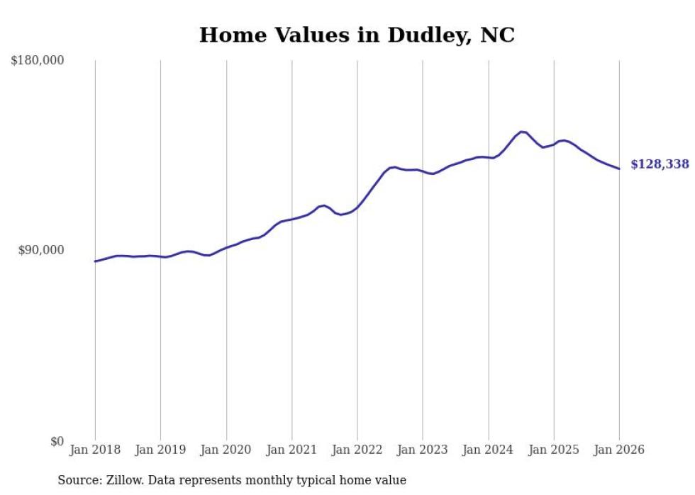 Cities with the fastest-growing home prices in the Goldsboro metro area