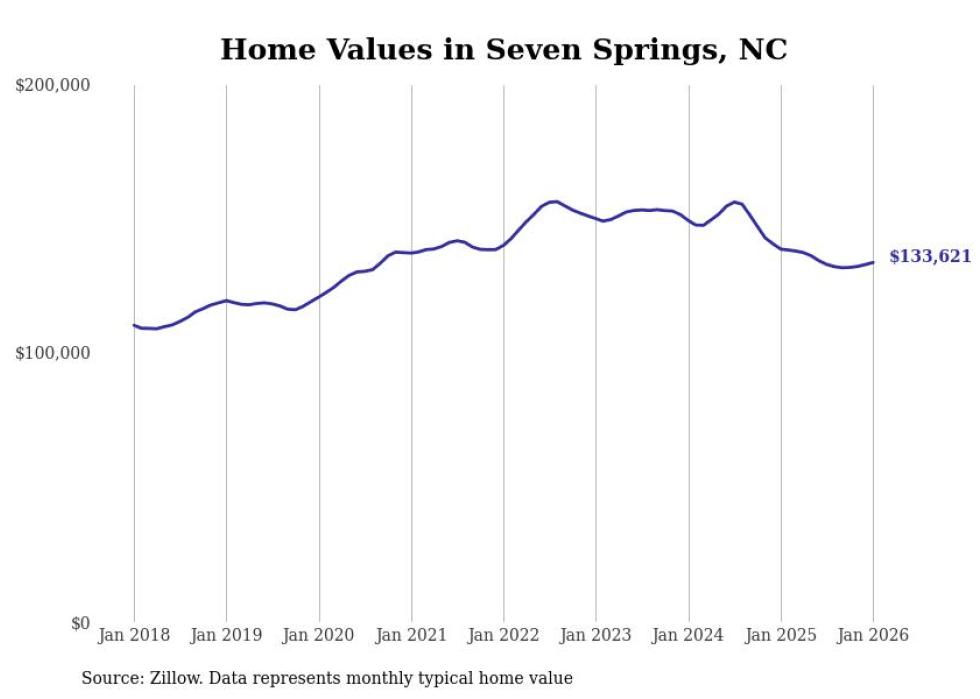 Stacker compiled a list of cities with the most expensive homes in the Goldsboro, NC metro area using data from Zillow. Charts show the monthly typical home value since January 2018.